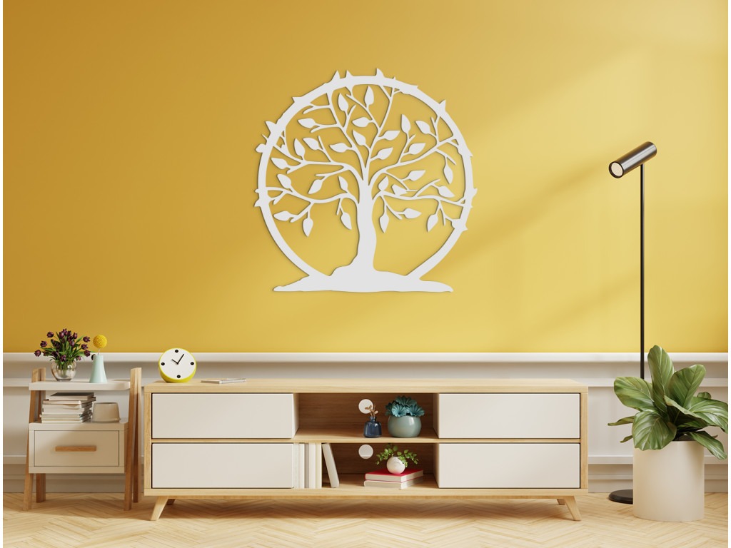 Skrášlite si interiér decentným a pôsobivým doplnkom. Drevená nálepka Strom života Cyklus života predstavuje listnatý strom s rozvetvenými konármi, orámovaný kruhovým rámom, vďaka čomu obraz vytvára ucelený dojem. Drevený Strom života je vhodný napríklad do jedálne, kuchyne, ale aj chodby či obývačky.