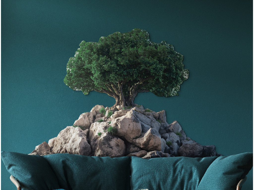 Le bonsaï sur socle rocheux, aux formes élégantes, symbolise l'équilibre entre la force et la sérénité. Le contraste entre la couronne verte et le fond blanc met en valeur ses détails et sa beauté naturelle. Cette œuvre dégage une impression de pureté, d'équilibre et de méditation, idéale pour créer une atmosphère agréable dans un intérieur.