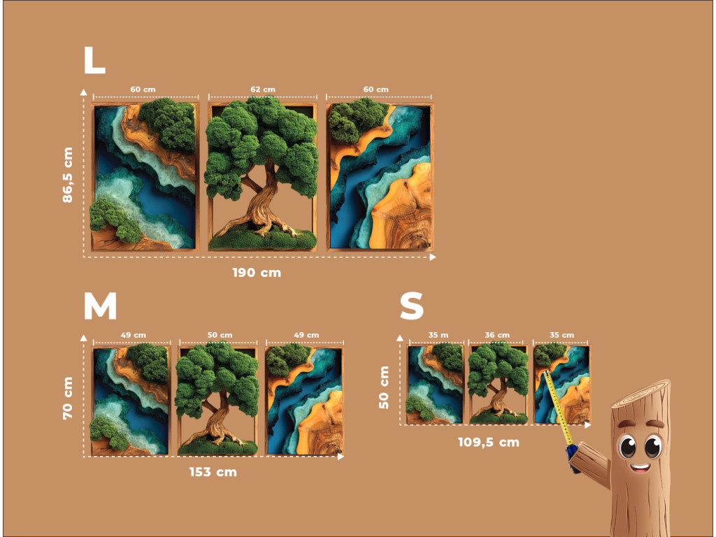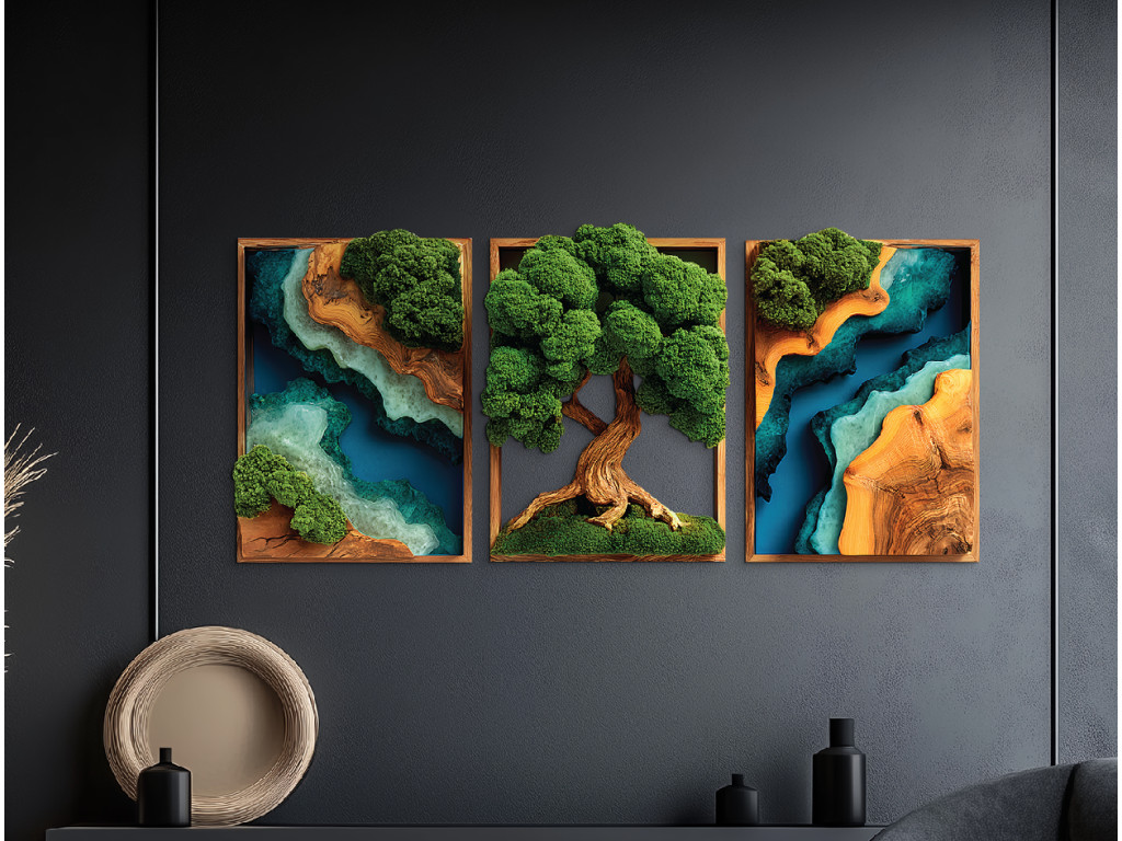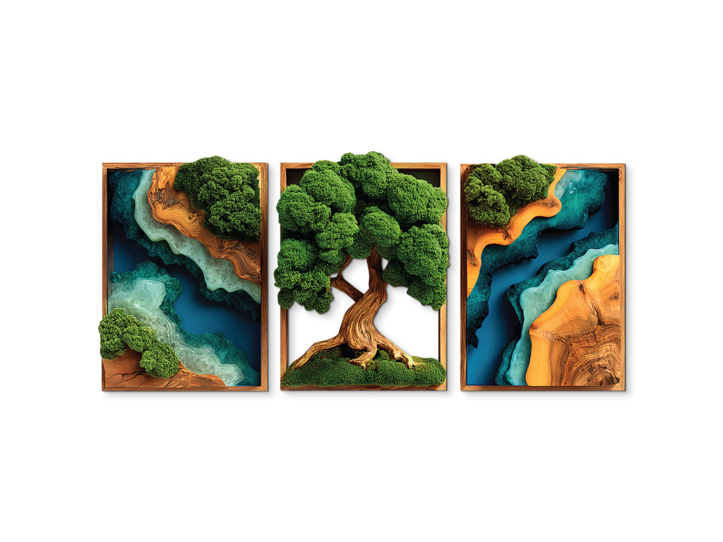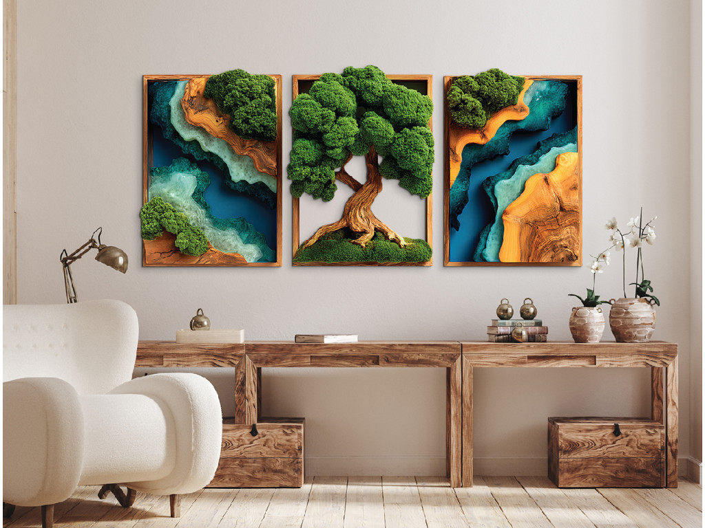 Arbre de vie moussu en trois parties Force (impression UV)
