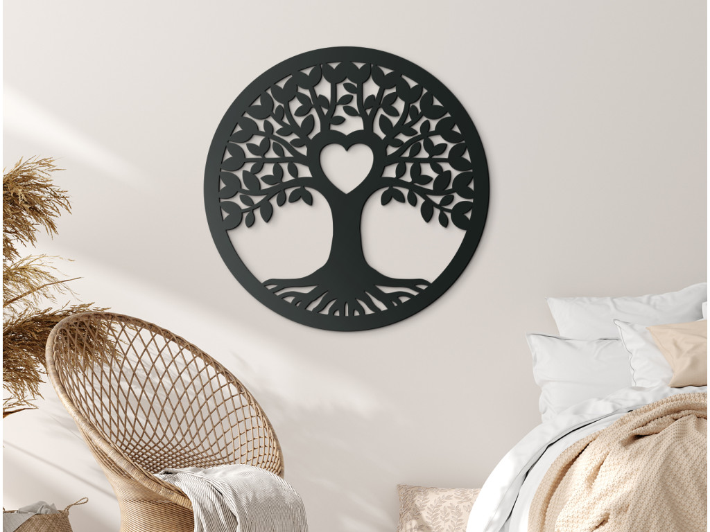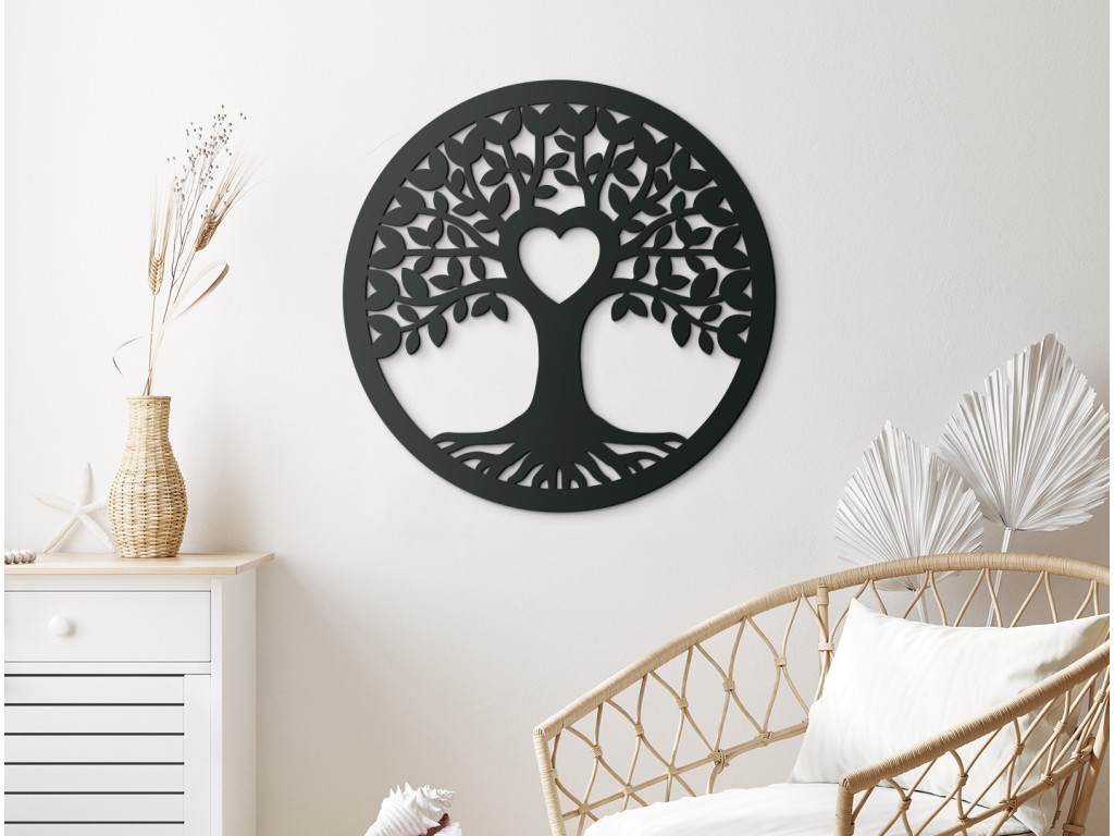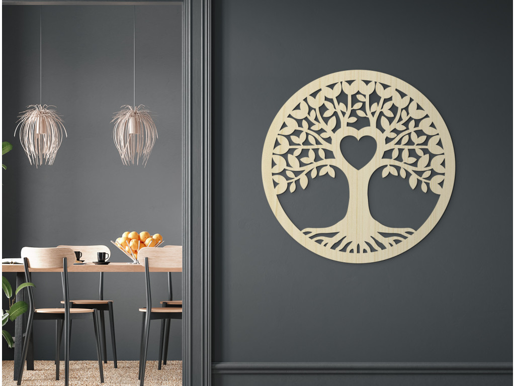 Arbre de vie en bois Amour - l'un des motifs les plus populaires qui plaira à tout le monde. L'arbre rond et le cœur sculpté au centre de l'arbre représentent l'amour et la paix éternels et épanouis.
