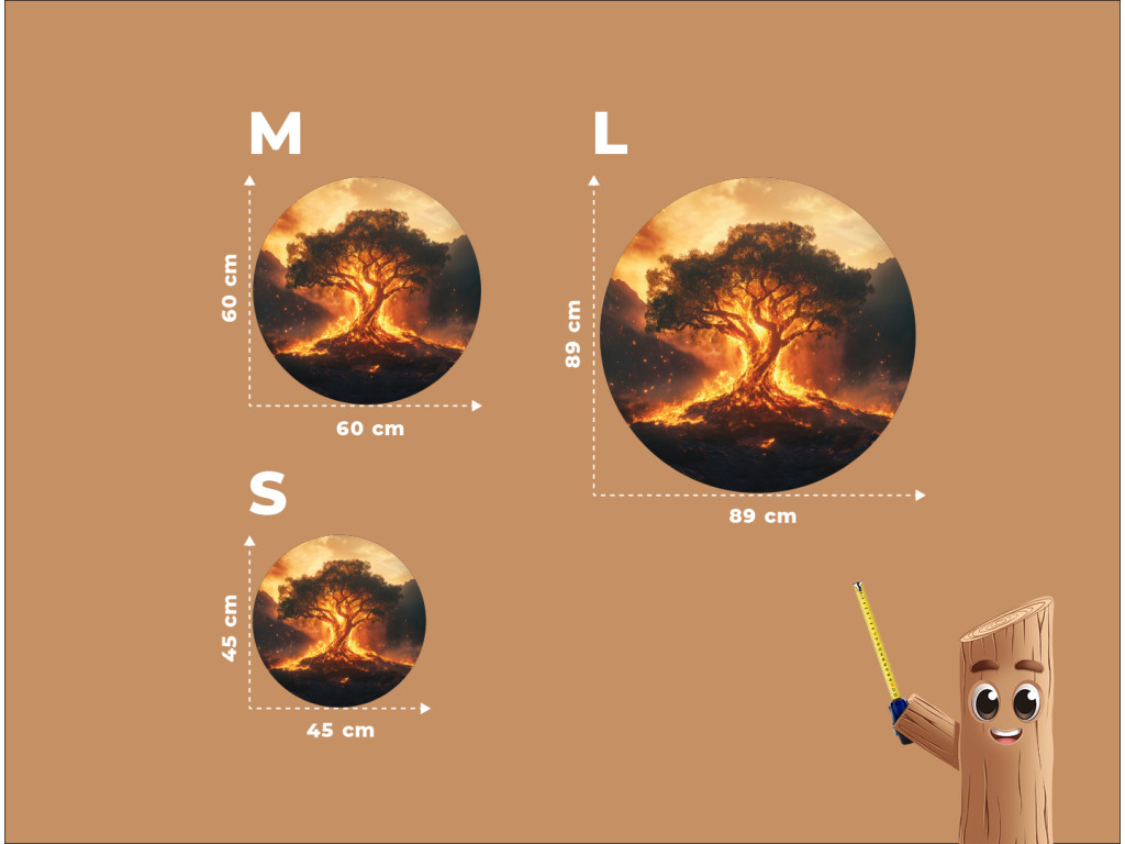 Le motif circulaire enflammé avec l'Arbre de vie entouré de flammes et de lave rayonne de puissance, de passion et de transformation. Le fond sombre aux nuances chaudes de rouge et d'orange crée une atmosphère dramatique avec une touche de mysticisme.