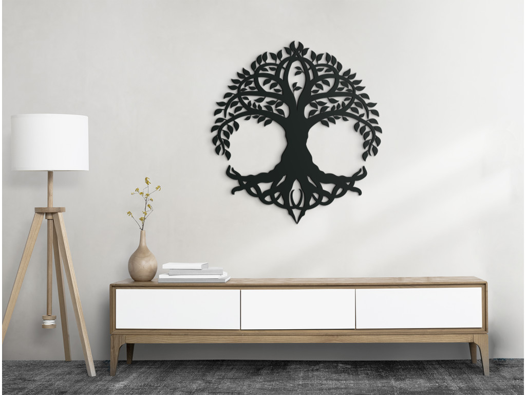 Obľúbený motív Strom života predstavuje základný archetyp mnohých svetových mytologických, náboženských a filozofických tradícií. Ak aj vás nadchýna jeho tajuplnosť a posolstvo, ktoré ukrýva, vďaka drevenej dekorácii na stenu sa v ňom môžete kochať, kedykoľvek sa vám zažiada. Nálepka na stenu Strom života Nesmrteľnosť previsnutý zobrazuje nielen prevísajúce konáre s lístím, ale aj hlboké korene, pričom celý obraz spolu naznačuje podobu kruhu, teda nekonečný kolobeh.