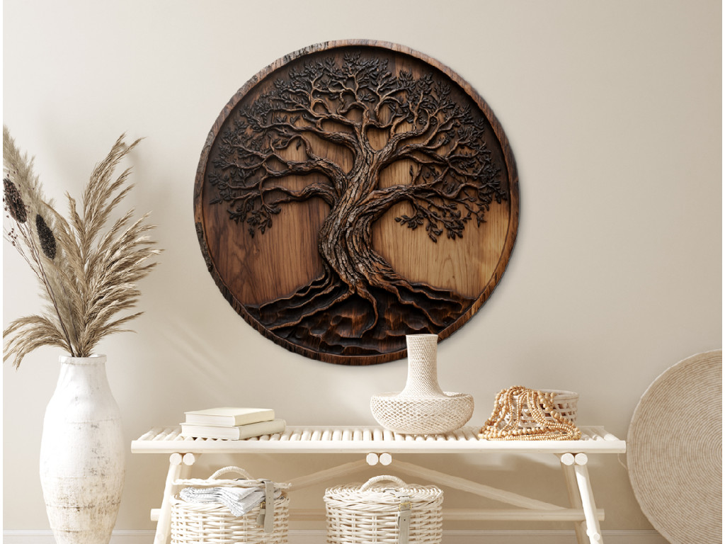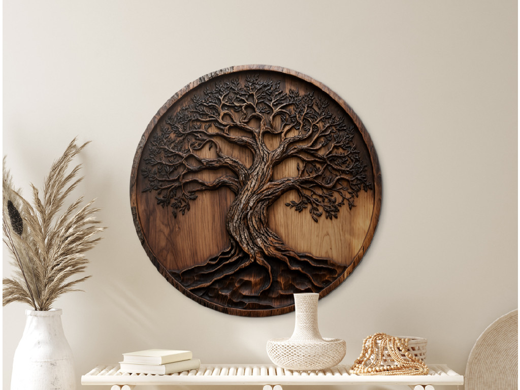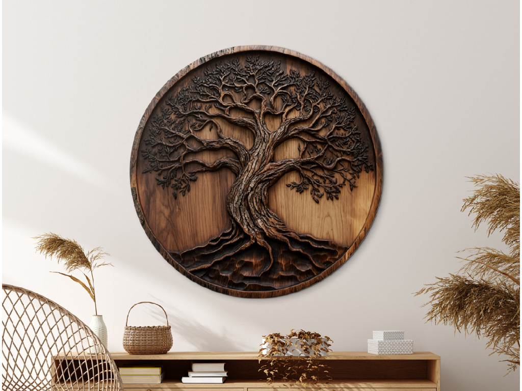 Le tableau unique Arbre de vie – Artisanat des ancêtres donne l’impression d’avoir été sculpté par la main d’un sculpteur ou d’un berger expérimenté d’autrefois. La couronne finement travaillée et les racines solides évoquent un artisanat authentique, la tradition et un lien profond avec la nature. Le motif symbolise la force des ancêtres, la continuité de la lignée et la sagesse transmise de génération en génération. Grâce à une impression UV précise, les structures du bois et les détails délicats de l’effet sculpté ressortent avec finesse, faisant de ce tableau un élément distinctif et authentique pour votre intérieur.