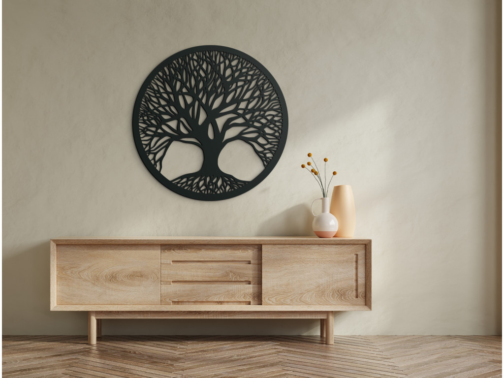 Pri detailnejšom pohľade na Strom života je zreteľne vidieť, ako sa jeho hlboké korene rozvetvujú do jednotlivých strán. Ten istý fenomén si môžeme všimnúť aj pri jeho vetvách. Ide vlastne o vyjadrenie úzkeho spojenia s prírodou, ktorá mu dáva výživu a možnosť rastu do výšky. Drevená dekorácia na stenu Strom života Jednota a spojenie ukazuje prepojenosť konárov a koreňov pomocou kruhu do jedného celku, čím poukazuje na vzájomnú prepojenosť jednotlivca a celej spoločnosti.