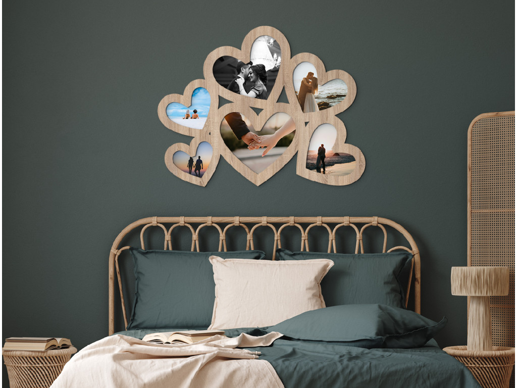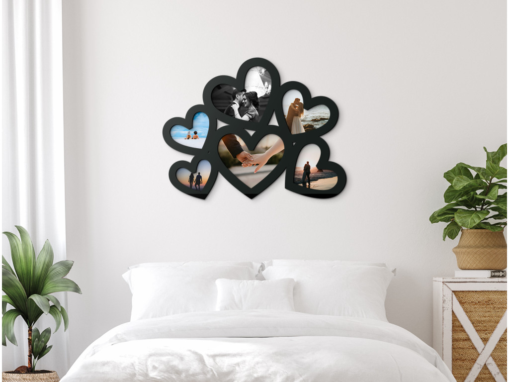 Dizajn je tvorený srdiečkami, do ktorých si môžete vystrihnúť vaše fotografie. Tento štýlový dizajn z neho robí skvelým darčekom pre vašu polovičku. Tak prečo si lepiť fotky do fotoalbumu, keď si ich môžete takto krásne vystaviť a mať na očiach každý deň?