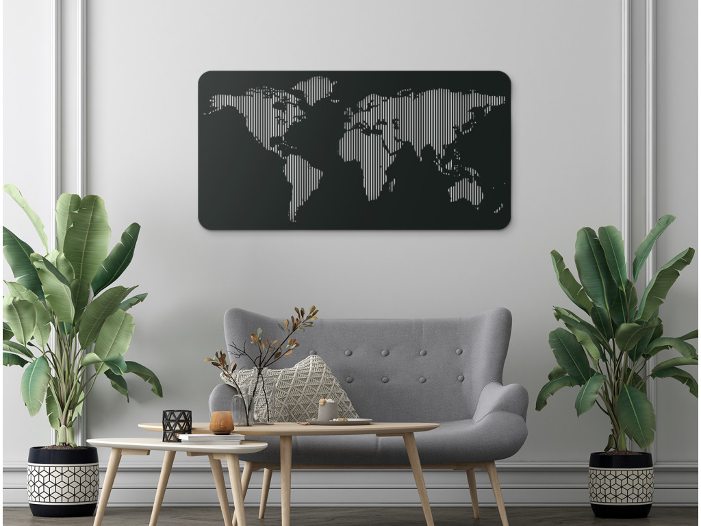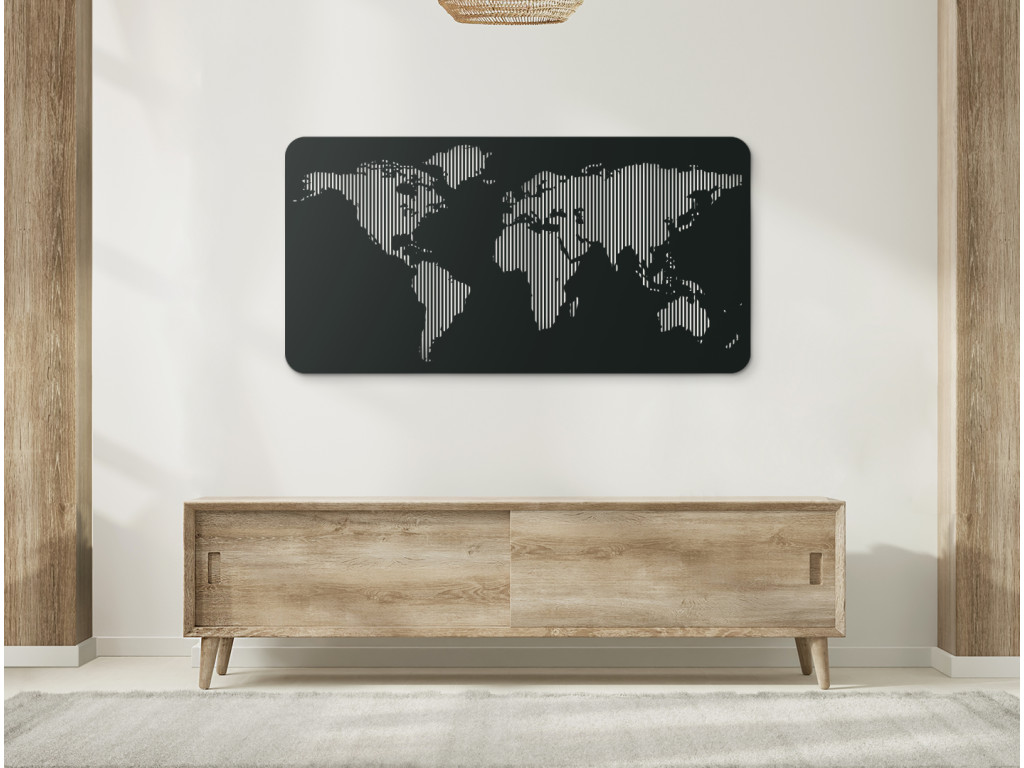 Moderná drevená mapa sveta zažiari v každom interiéri. Minimalistický dizajn a detaily sú to čo robia mapu sveta výnimočnou. Kontinenty sú vyrezané do obrazov tak, že v nich ostávajú vertikálne línie. Hodí sa do všetkých miestností - od obývačky, chodby spálne až po kanceláriu. Krásne sa bude vynímať nad gaučom či kancelárskym stolom.