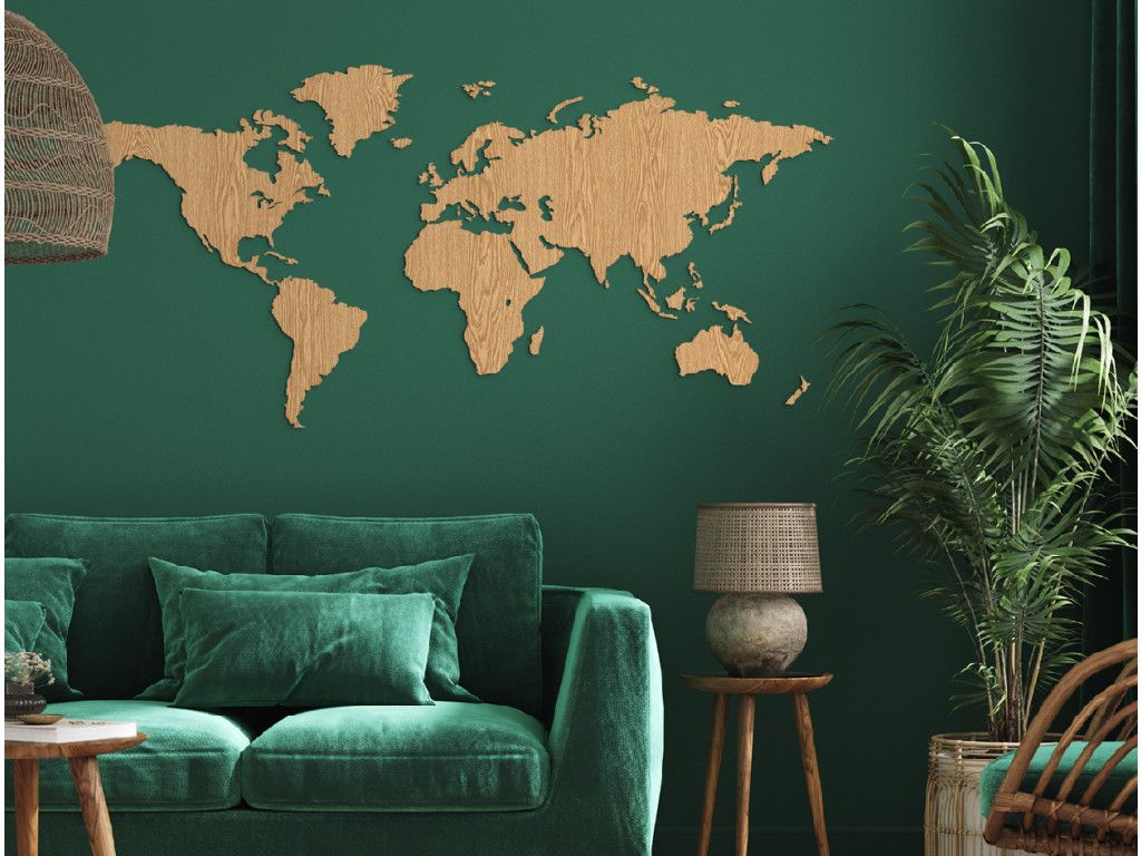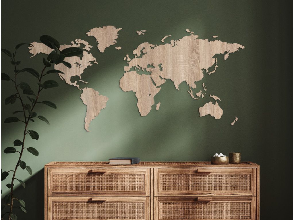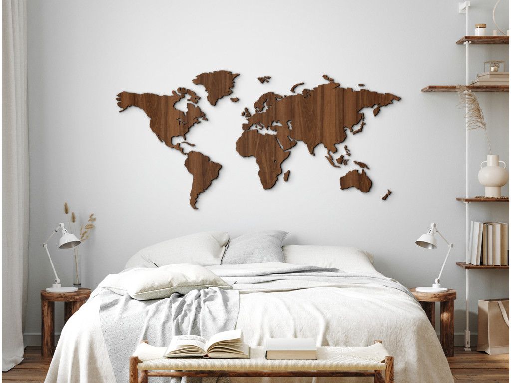 Drevená mapa sveta na stenu