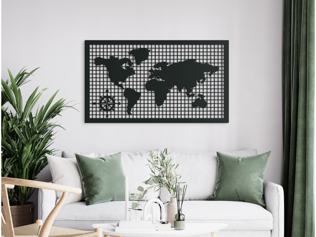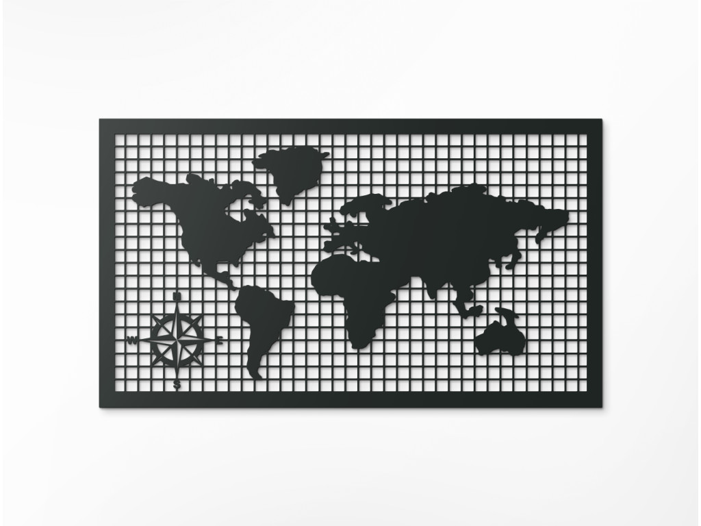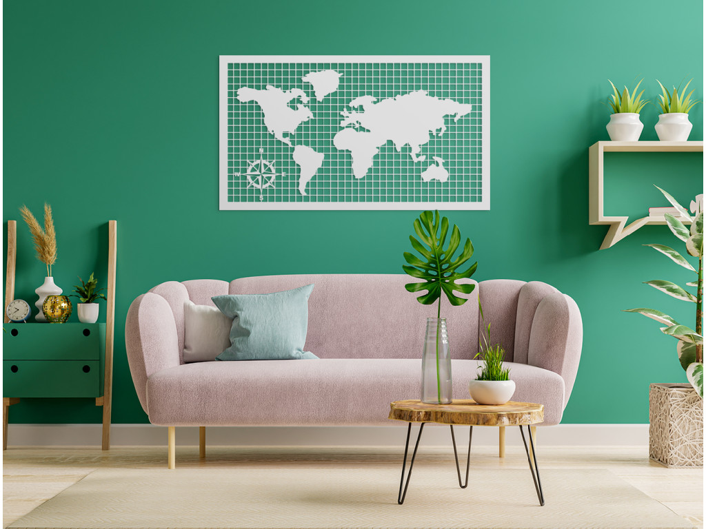 Ste milovník cestovania? Potom u vás nemôže chýbať drevená mapa sveta. Svetadiely vyrezané do kvalitného materiálu sú položené na horizontálnych a vertikálnych líniách. V rohu sa nachádza kompas. Obraz v tvare obdĺžnika vynikne v kancelárskych priestoroch, obývačke, spálni aj predsieni. Je tiež výborným nápadom na darček.