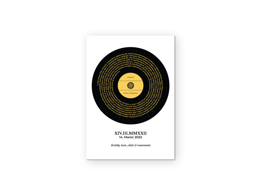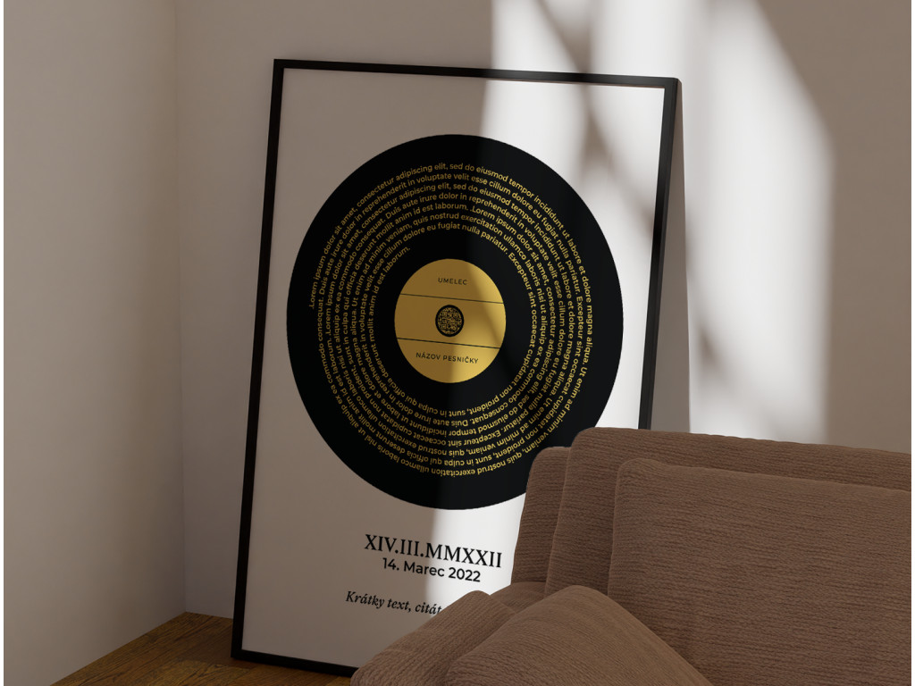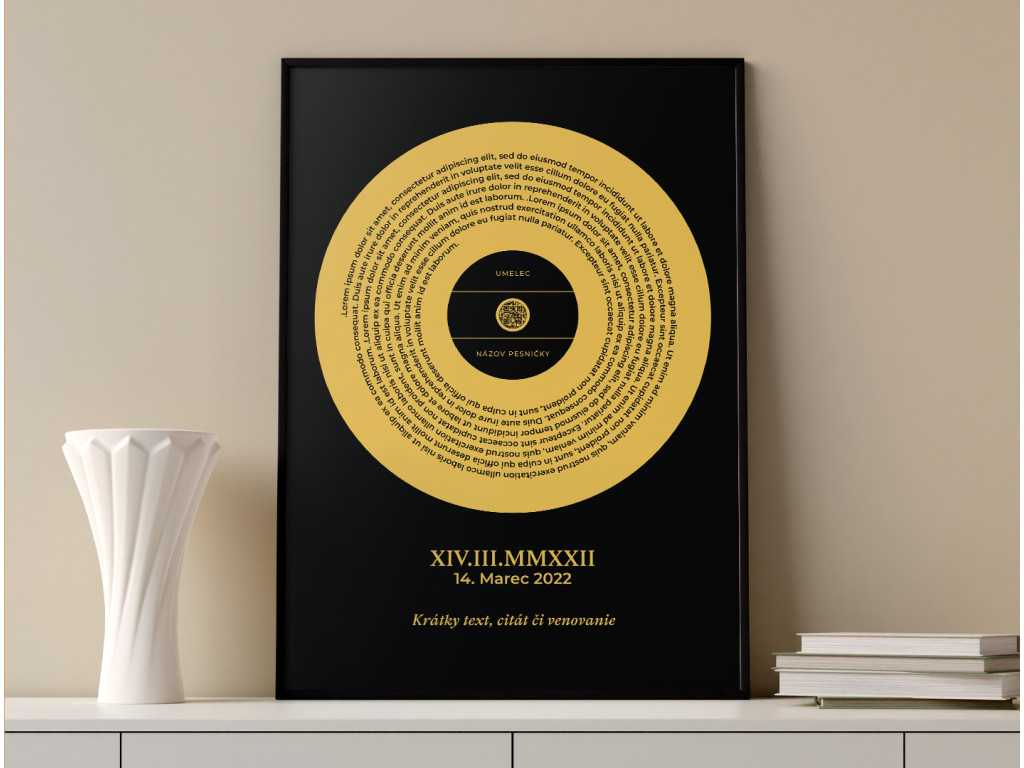 Un tableau original dans le style d'un disque vinyle, dans lequel vous pouvez insérer le texte de votre chanson préférée, le titre de la chanson, l'interprète ainsi que votre propre dédicace ou la date. Elle comprend également un code QR qui, une fois scanné, lit la chanson sélectionnée directement sur votre téléphone. Disponible en différentes couleurs, c'est un cadeau unique et personnel pour votre partenaire, vos amis ou votre famille.