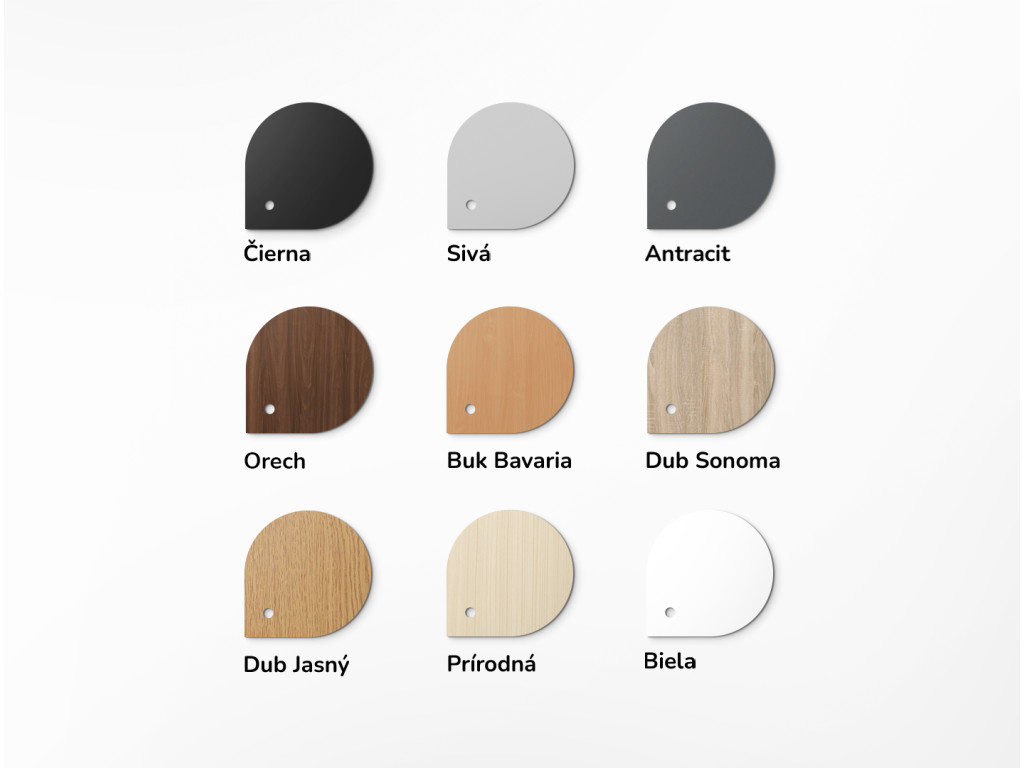 Vzorkovník vám pomôže zvoliť správnu farbu HDF materiálu, ktorý používame na výrobu obrazov, citátov a dekorácií. Každá vzorka má rozmer 10 x 10 cm a má tvar piktogramu nášho loga. Jednotlivé vzorky sme zavesili na praktickú okrúhlu karabínku, vďaka ktorej môžete jednotlivé vzorky vyberať a naspäť vkladať. Vzorkovník obsahuje úplne všetky dostupné farby a dekory.