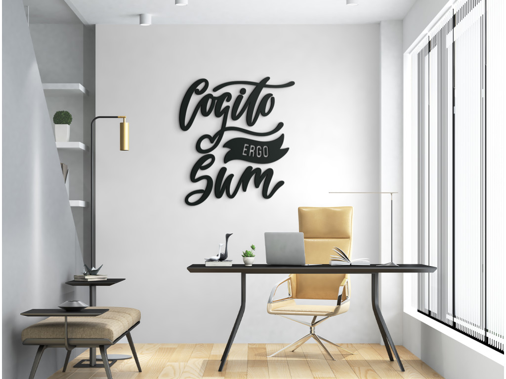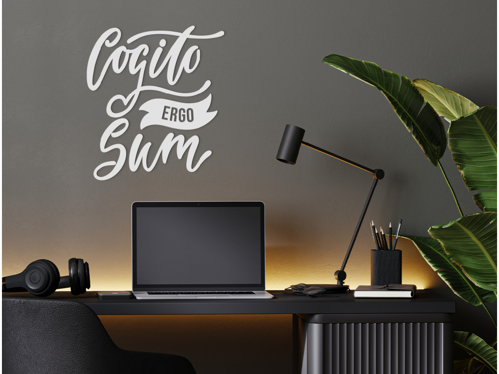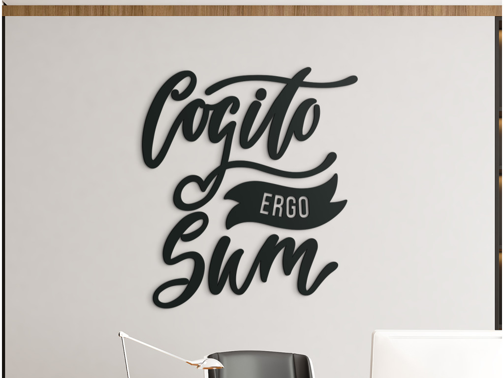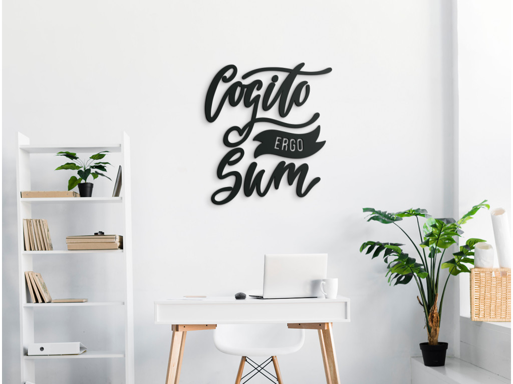 Kto by nepoznal známy výrok Cogito ergo sum - Myslím, teda som, ktorý prvýkrát použil francúzsky filozof René Descartes vo svojom diele Principia philosophiae? Drevená dekorácia v modernom dizajne s nadčasovým odkazom sa bude hodiť do interiéru zariadeného v akomkoľvek štýle.