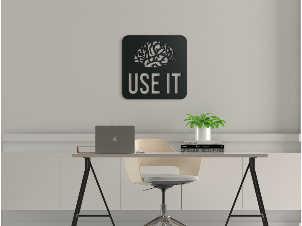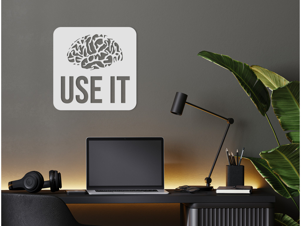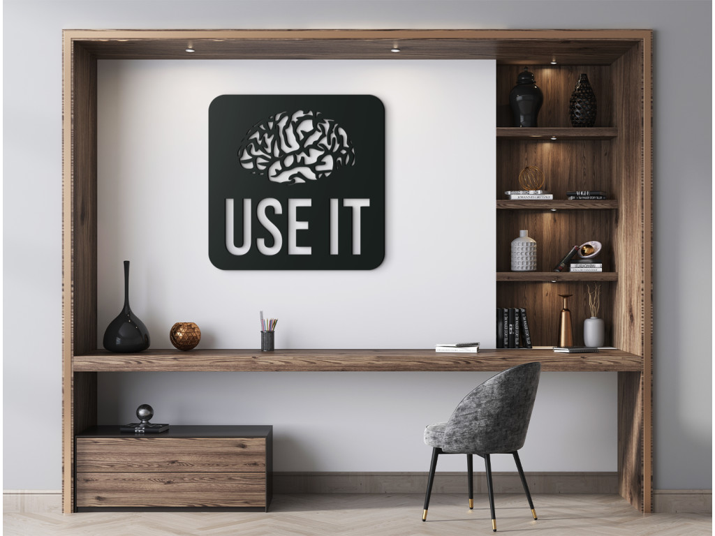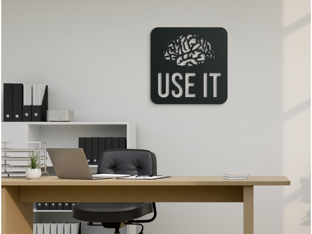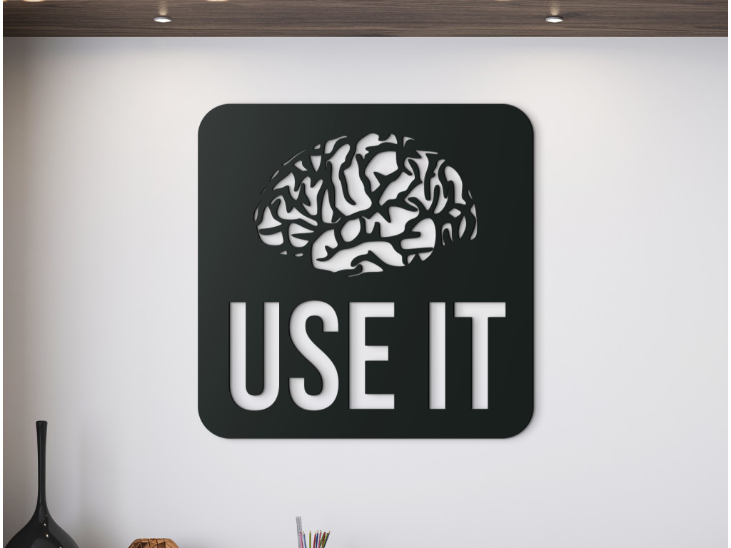 S dreveným nápisom na stenu Use it necháte vyniknúť ľubovoľnú miestnosť v byte či dome. Nálepka znázorňuje ľudský mozog a pod ním anglický nápis "Use it". Toto humorné odporúčanie si nájde svoje miesto napríklad nad pracovným stolom, v študentskej či internátnej izbe, prípadne v obývačke.