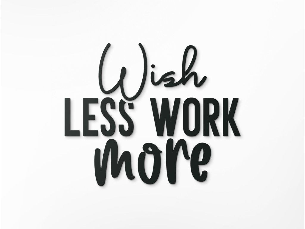 Inscription murale Wish less work more