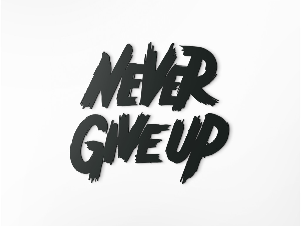 Drevený nápis na stenu Never give up