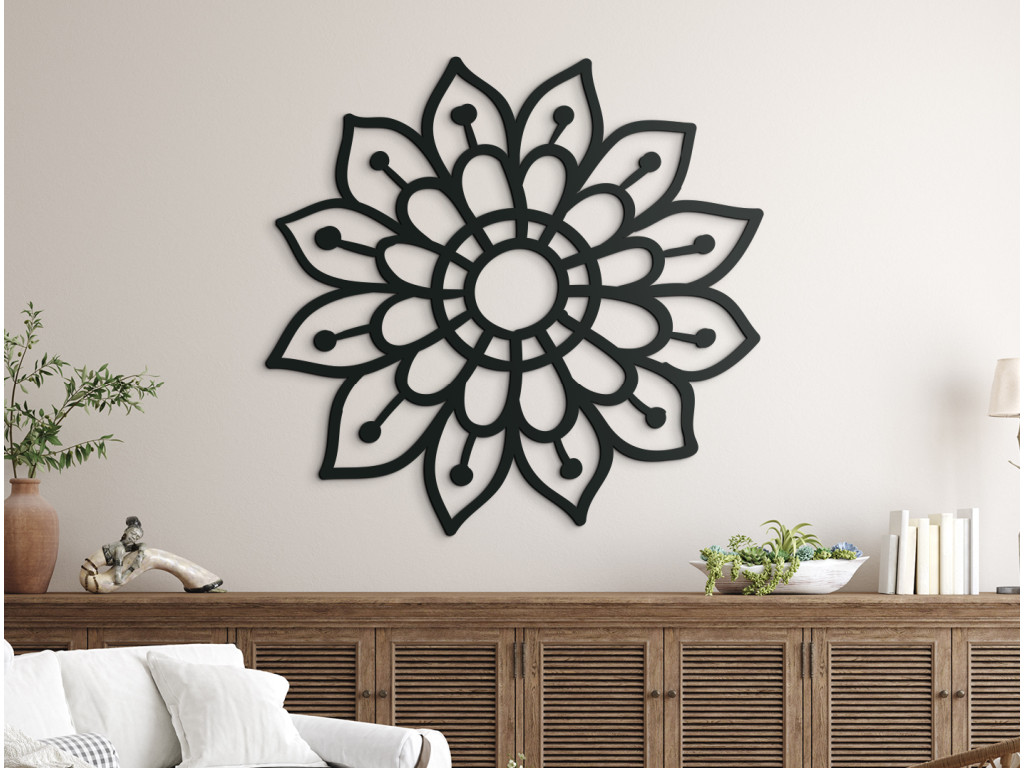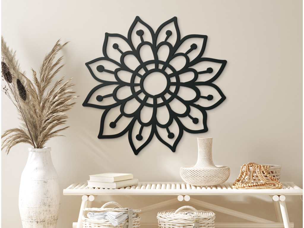 Mandala je ideálna pre moderné aj tradičné interiéry, kde sa stane centrálnym prvkom vašej dekorácie. Jednoduchá montáž bez nutnosti vŕtania umožňuje rýchle a pohodlné umiestnenie na stenu.