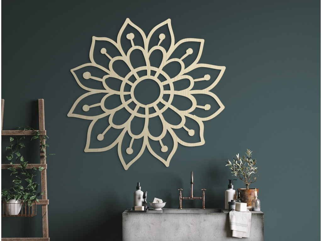 Drevená mandala na stenu Kvet prináša do vášho domova harmóniu a krásu prírody. Tento precízne vyrezávaný dizajn z kvalitnej HDF dosky zobrazuje kvetinovú mandalu, ktorá symbolizuje rovnováhu a pokoj.