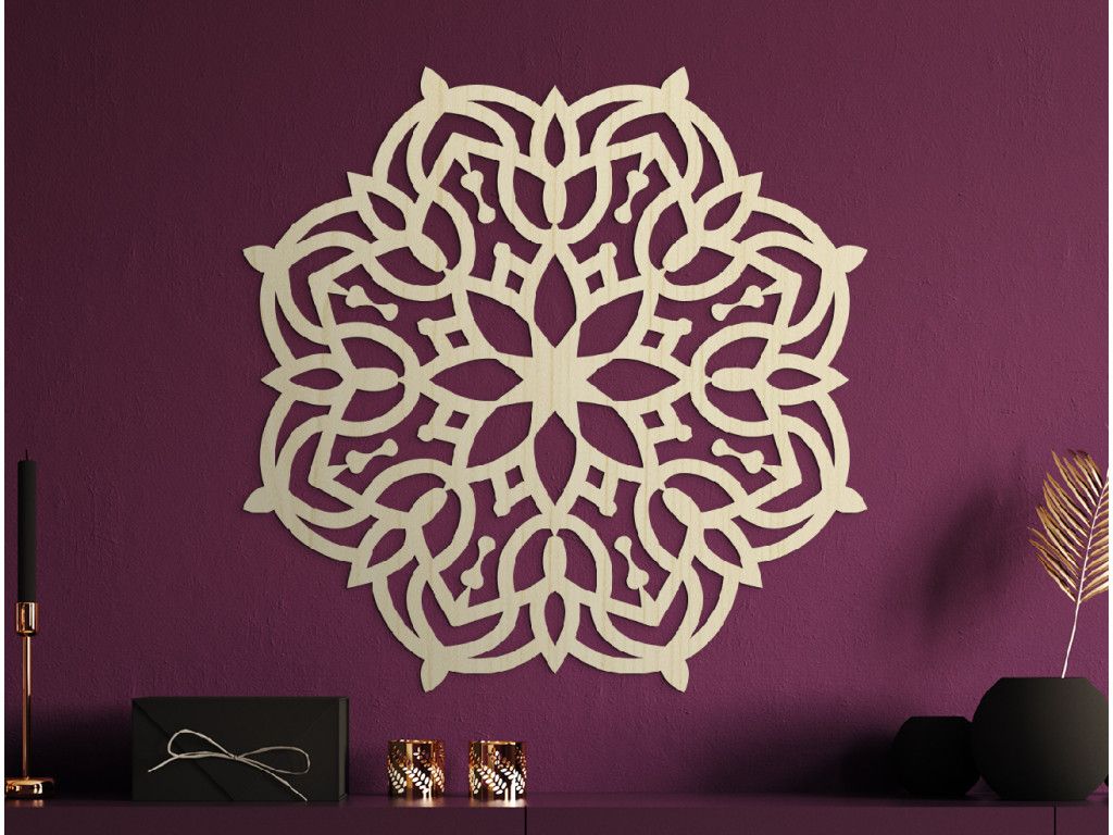 Nádherne vyrezávaný dizajn z kvalitnej HDF dosky zobrazuje mandalu s motívom prírodného rastu, ktorý stelesňuje obnovu, vitalitu a neustály pohyb života. Každý detail mandaly je precízne spracovaný, čím dodáva priestoru pocit harmónie a pokoja.