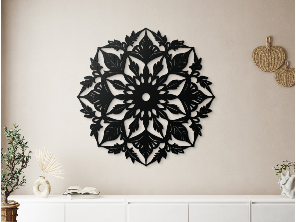Mandala na stenu Kvetina je umelecký prvok, ktorý spája krásu prírody s symbolikou mandaly, čím vytvára jedinečný a vyvážený dizajn. Každý detail kvety a mandaly je precízne vypracovaný, čo zaručuje vysokú úroveň estetiky a kvality. Jemné prevedenie a zložité vzory podporujú pocit pokoja a harmónie, čo robí túto nálepku ideálnou pre priestory, kde potrebujete relaxáciu a inšpiráciu.