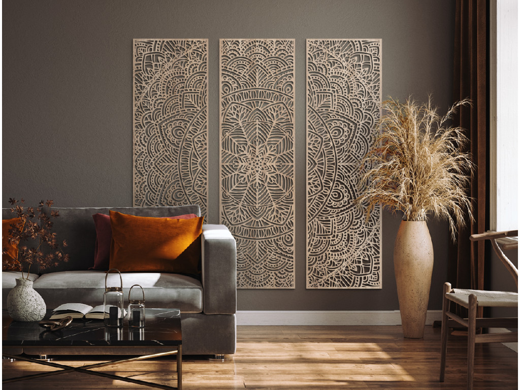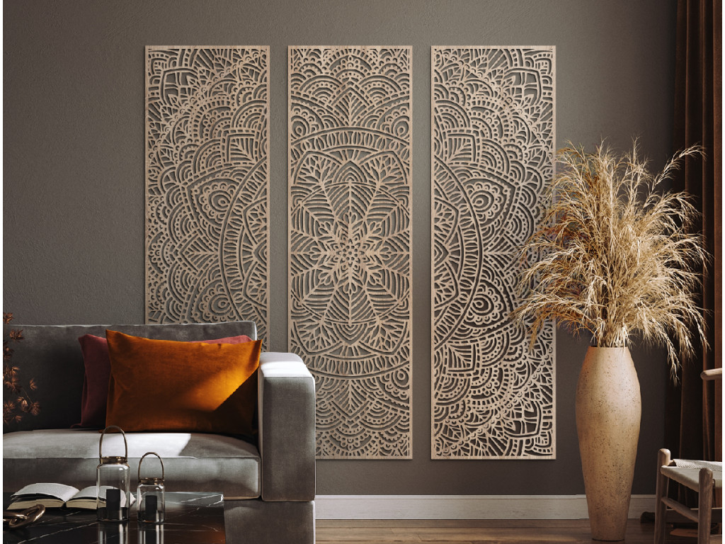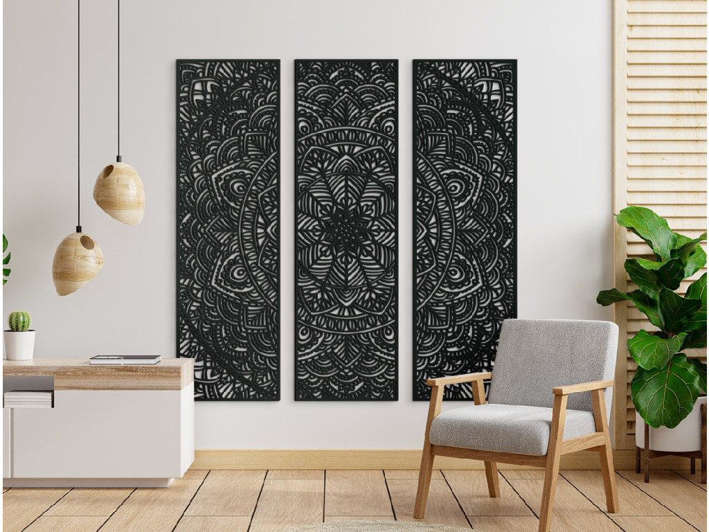 Pretvorte miestnosť na unikátnu s touto viacdielnou mandalou prepracovanou do posledného detailu. Pôvabný dizajn si môžete vybrať vo viacerých dekoroch. Unikát zapadne do moderného aj klasického interiéru a bude sa krásne vynímať vo všetkých miestnostiach v dome. Vďaka svojim údajným upokojojúcim schopnostiam sú tieto obrazy ideálne do kancelárií a priestorov, kde vládne zvýšené napätie pri práci alebo sa vyžaduje mimoriadne sústredenie.