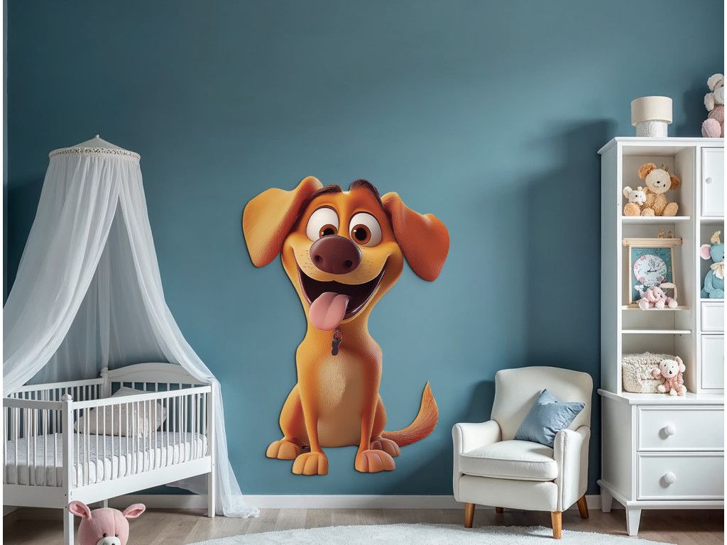 L'adorable petit chien Bodi, avec sa langue pendante et ses oreilles dressées, respire la joie et l'espièglerie. Cette jolie décoration apportera gaieté et bien-être dans la chambre d'enfant – imprimée sur une plaque rigide et découpée en forme.