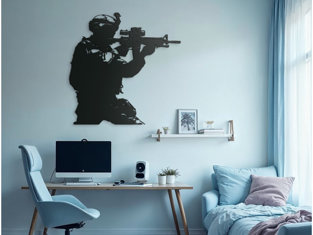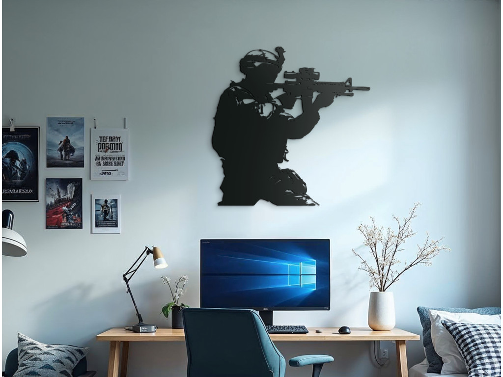 Drevená dekorácia na stenu Ostreľovač v nasadení