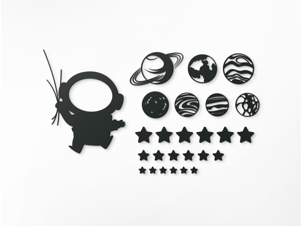 Vytvorte z detskej izby miesto, kde sa dieťa bude cítiť dobre. Zútulnite ju detskou sadou nálepiek s témou veľkolepého vesmíru. Sada obsahuje hviezdičky, kozmonauta a planéty. Za výhodnú cenu tak získate viacero nálepiek.