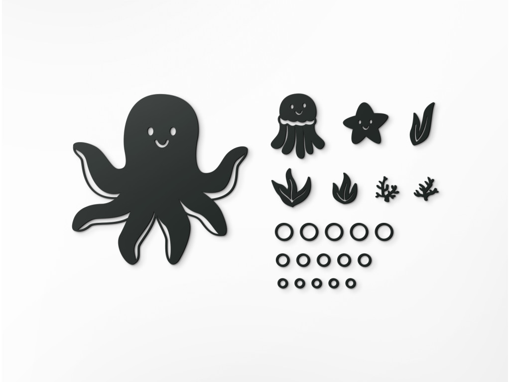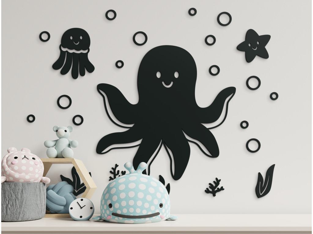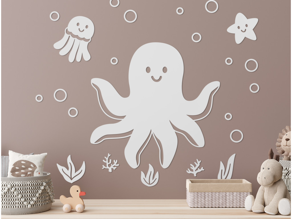 Vytvorte z detskej izby miesto, kde sa dieťa bude cítiť dobre. Zútulnite ju detskou sadou nálepiek s témou podmorského sveta. Sada obsahuje chobotnice, morskú hviezdu, rastliny a bublinky. Za výhodnú cenu tak získate viacero nálepiek.