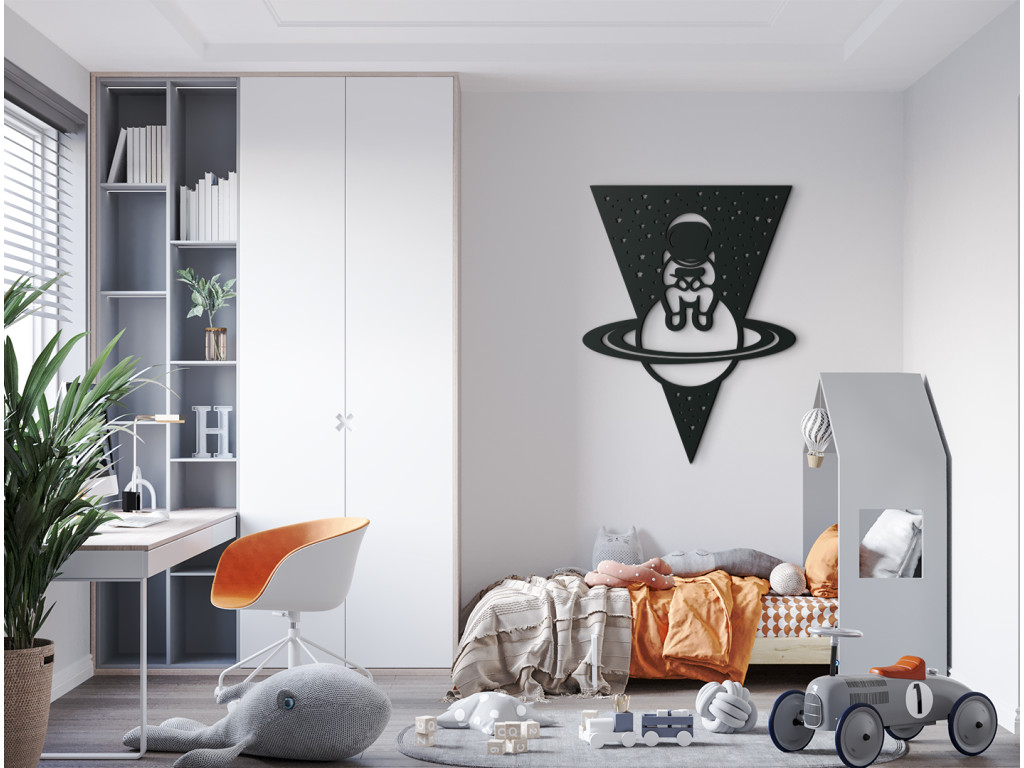Vesmír a všetko, čo sa v ňom nachádza, vzbudzuje jedinečnú atmosféru. Dekorácia je vhodná pre malých aj veľkých astronautov. Astronaut je vyobrazený, ako sedí na planéte Saturn. Za ním sa nachádza moderný trojuholník, na ktorom sú vyobrazené hviezdy. Netradičné vyobrazenie vnesie do interiéru originálnu atmosféru.