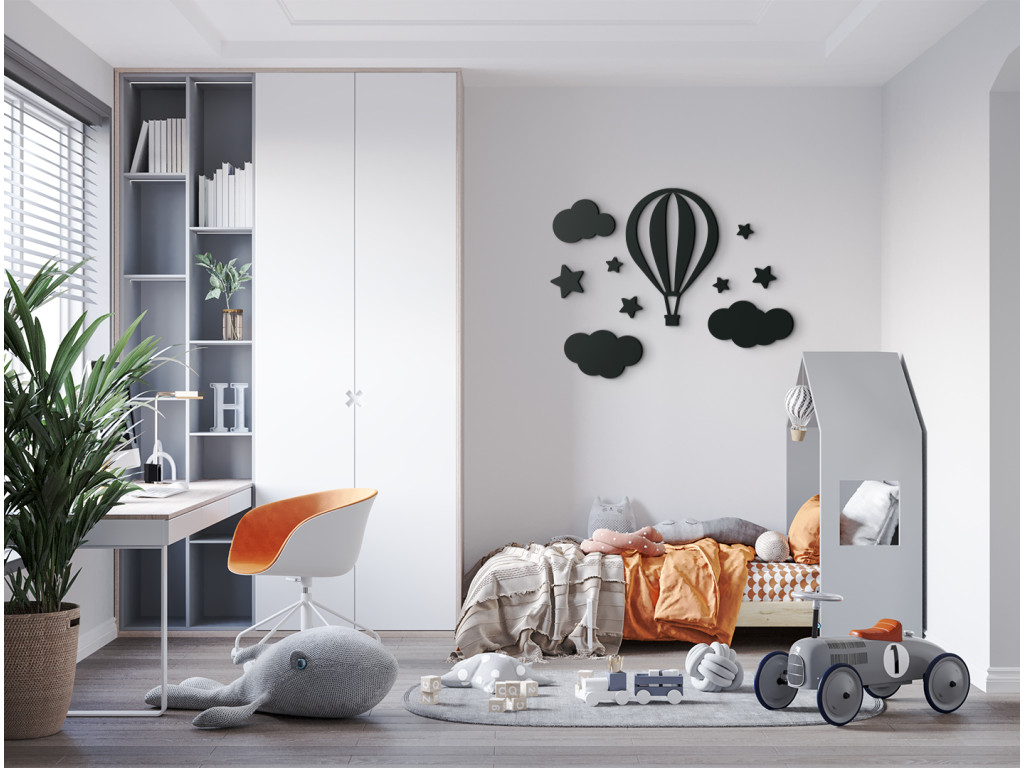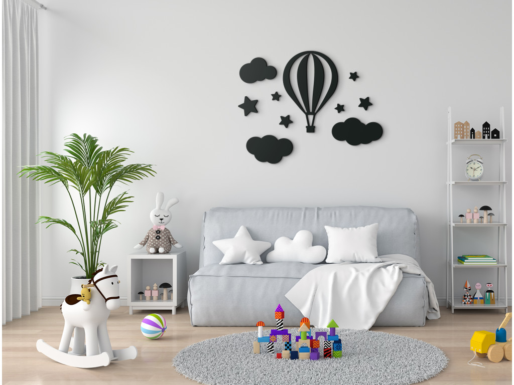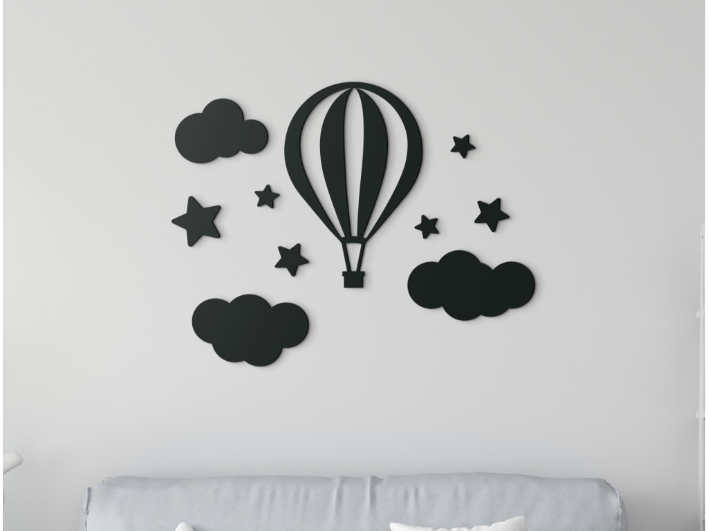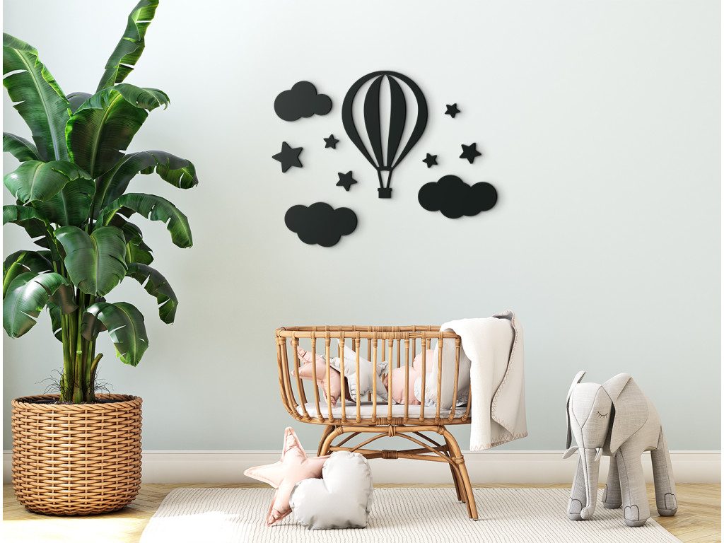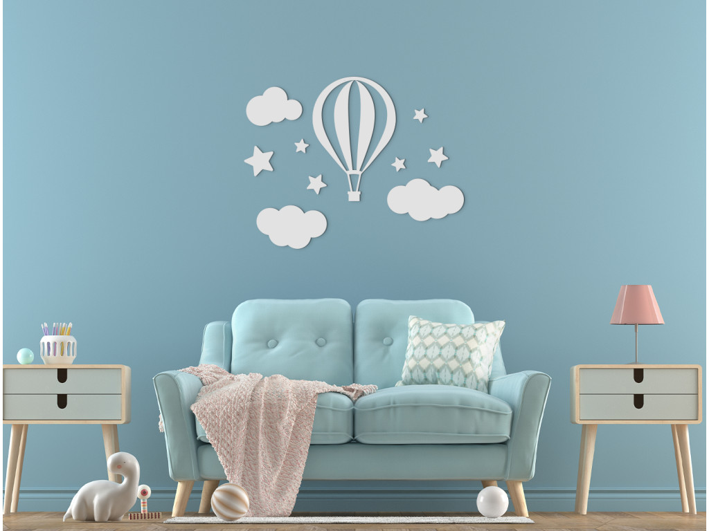 Dobrodružná nálepka na stenu do detskej izby zaujme bez rozdielu chlapcov i dievčatá. Drevená dekorácia ponúka pohľad na lietajúci balón vznášajúci sa medzi obláčikmi. Fascinujúci motív, ktorý nepochybne prebúdza detskú fantáziu.