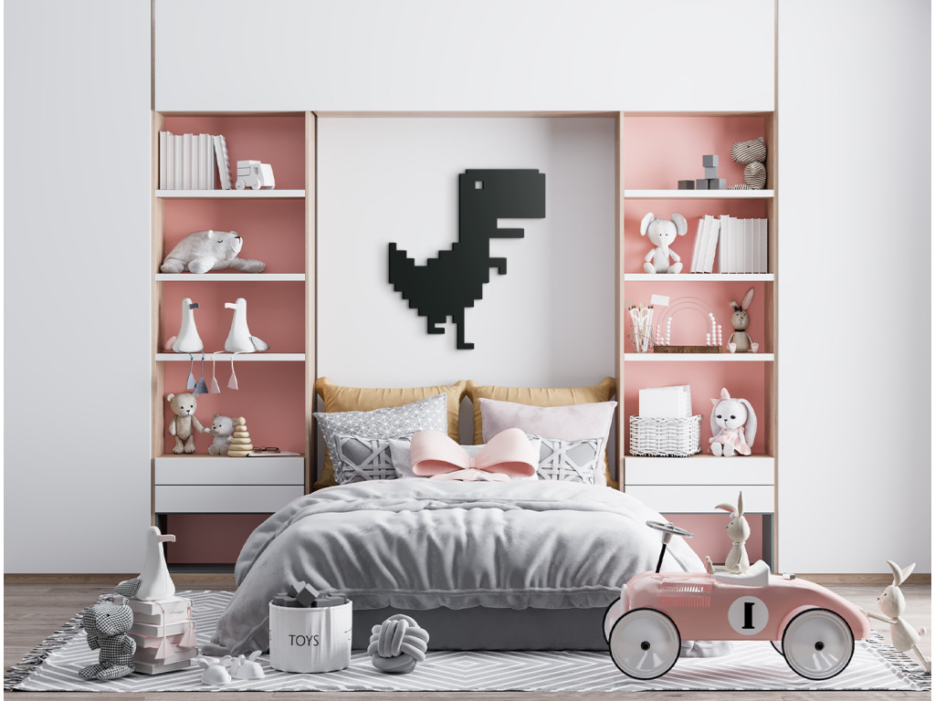Un dinosaure sur le mur donnera un look original à la chambre de vos enfants. Faites plaisir à vos enfants et décorez leur chambre avec une décoration en bois en forme de dinosaure. Le design coloré s'harmonise facilement avec l'aménagement général de la chambre d'enfant.