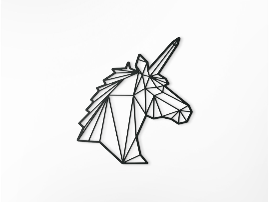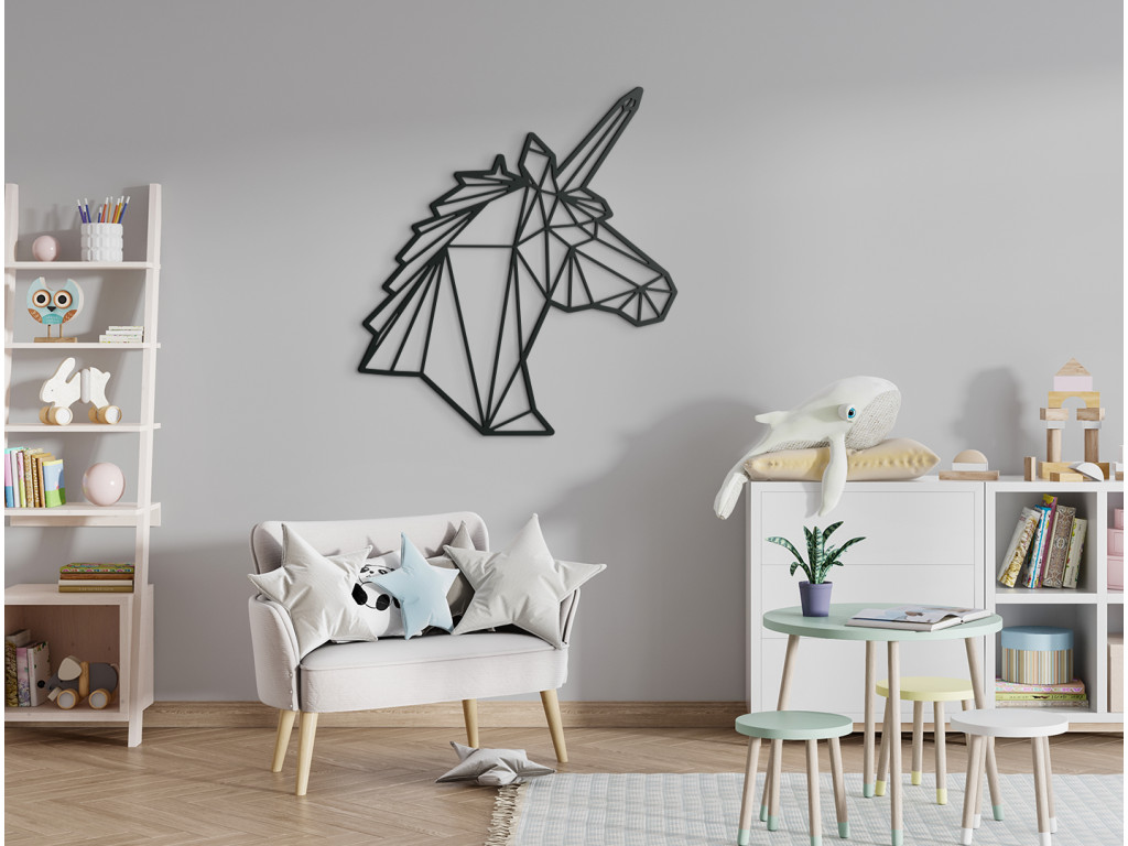 Moderná detská dekorácia Polygonálny jednorožec zobrazuje hlavu a šiju tejto obľúbenej rozprávkovej bytosti. Zaujímavý efekt nálepke na stenu dodávajú geometrické obrazce, ktoré vypĺňajú celý obraz. Vďaka originálnemu poňatiu je obrázok vhodný pre menšie, ale aj väčšie deti.