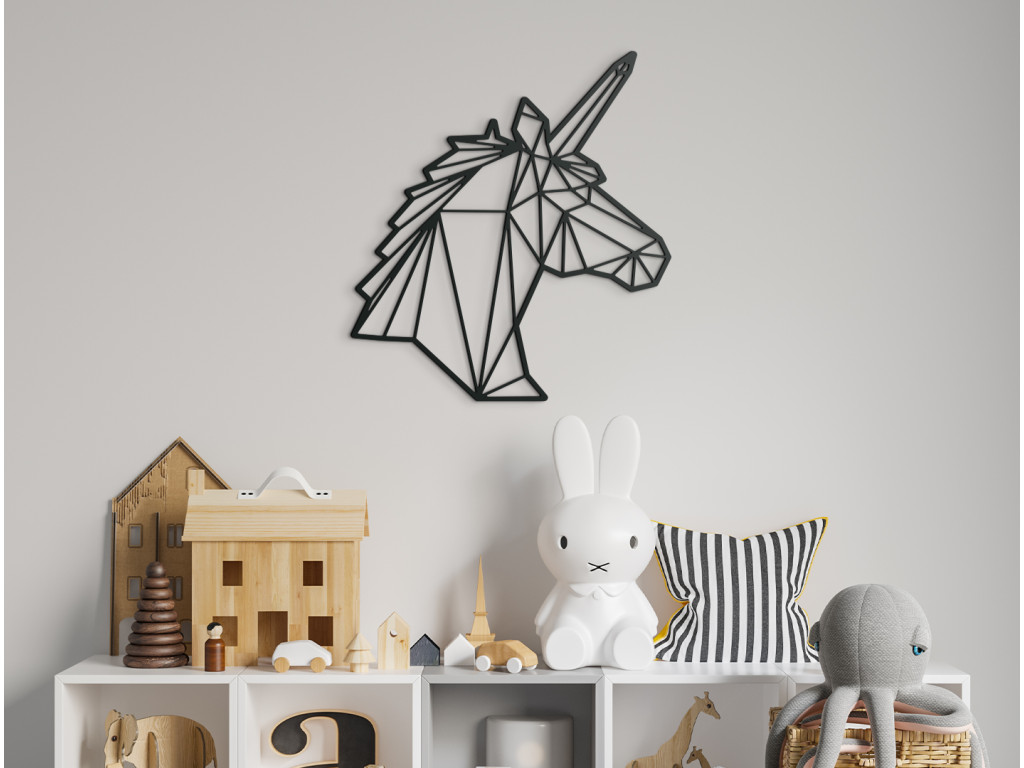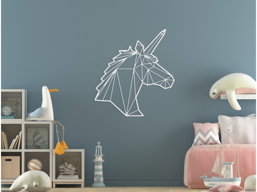 Drevená nálepka do detskej izby Polygonálny jednorožec