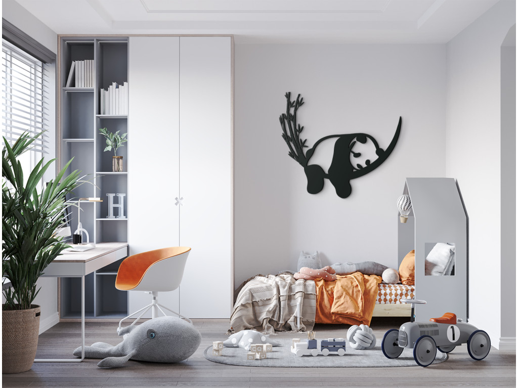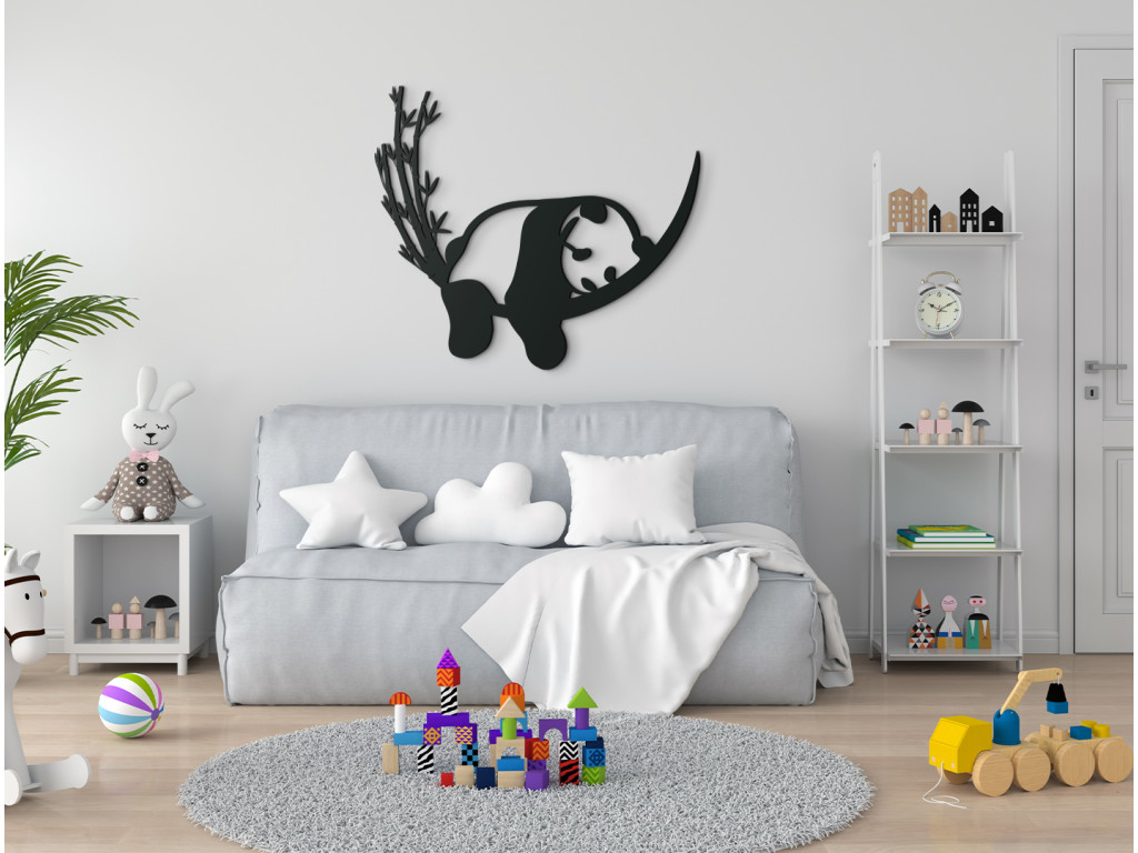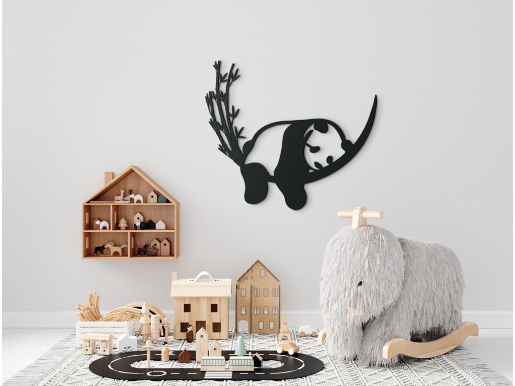 Dekorácia na stenu detskej izby s motívom driemajúcej pandy pôsobí upokojujúcim a relaxačným dojmom. Zobrazuje spiacu pandu, ktorá odpočíva na bambusovom konári a labky jej pritom uvoľnene visia nadol. Skrátka dokonalý obraz pohody a oddychu.