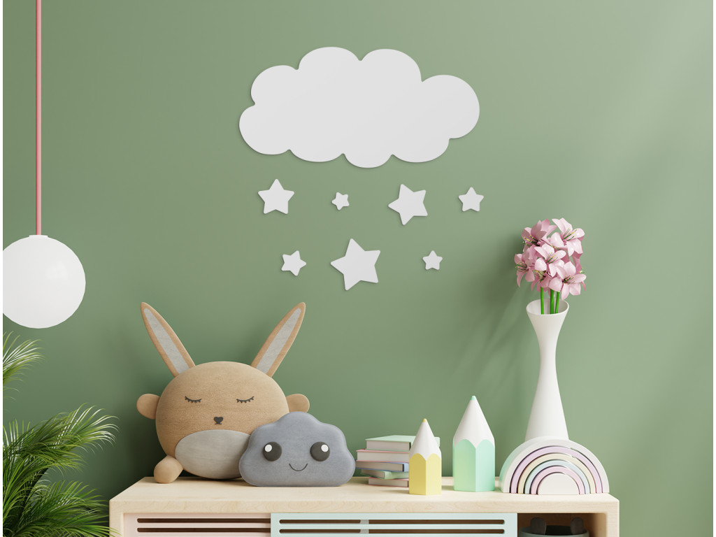 Spríjemnite deťom zaspávanie a celkovú atmosféru v detskej izbe. Drevené obláčiky na stenu budú dieťatko upokojovať a pomáhať mu snívať pekné sníčky. Obláčiky môžete umiestniť nad posteľ, postieľku, komodu. Trendový dizajn dokonale skrášli interiér každého, malého i veľkého milovníka pekných doplnkov.