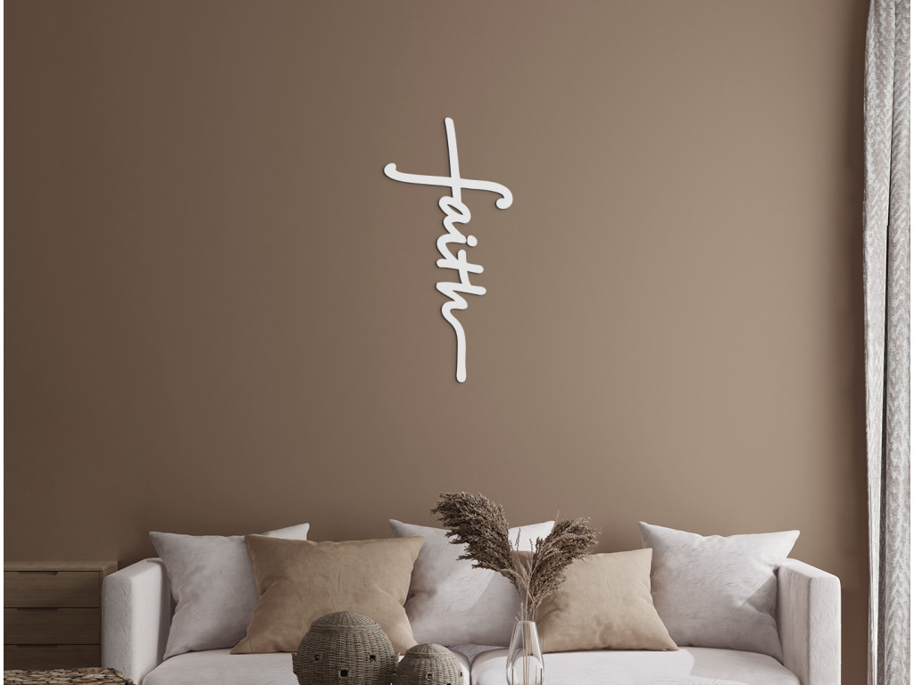 Nápis "Faith" (v preklade "viera") pripomína dôležitosť viery v každodennom živote a je silným vyjadrením kresťanských hodnôt. Vyberte si z 8 rôznych dekorov a uistite sa, že dekorácia dokonale zapadne do vášho interiéru.