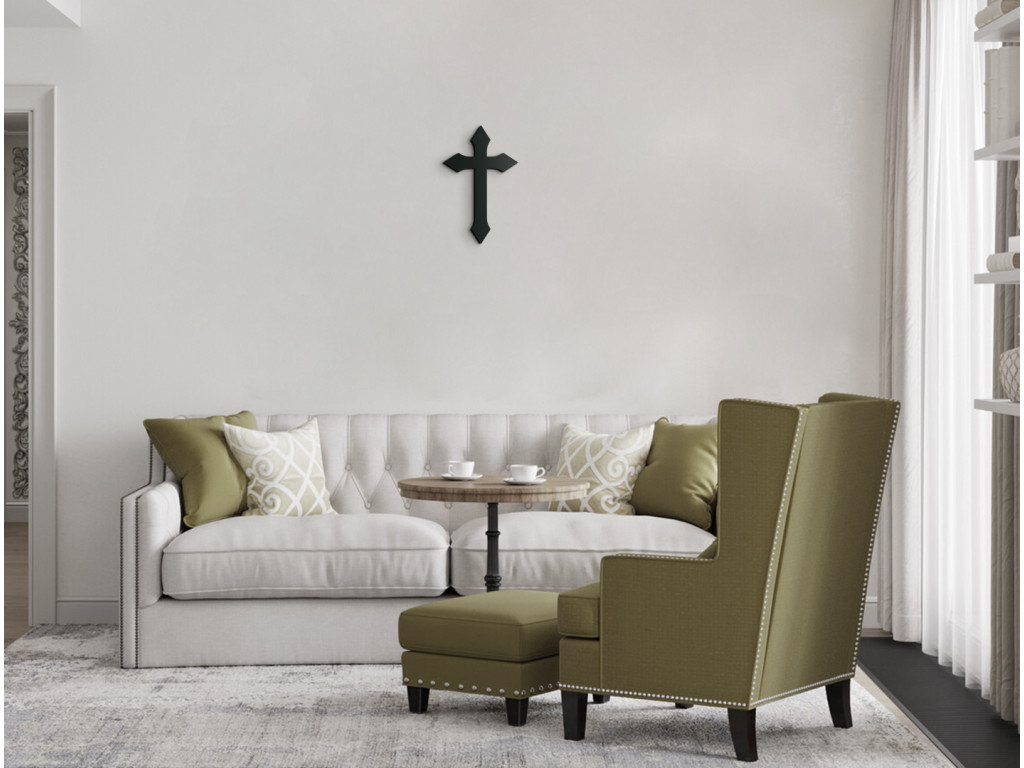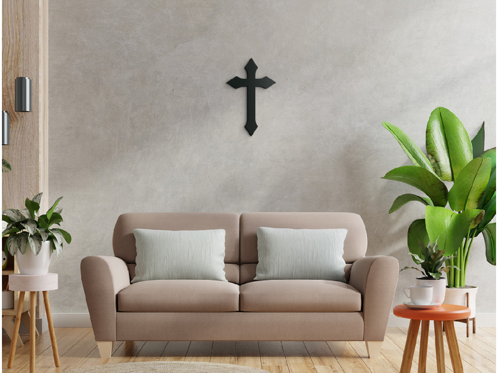 L'autocollant décoratif avec une croix gothique est un accessoire pour votre intérieur qui apporte une profonde signification spirituelle et l'esthétique de la symbolique chrétienne.