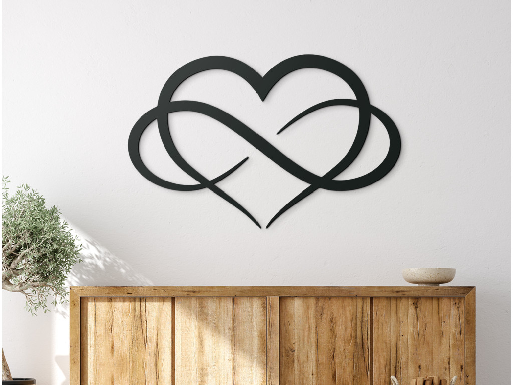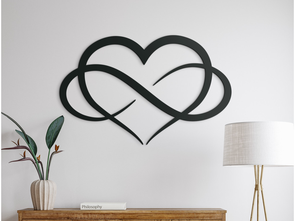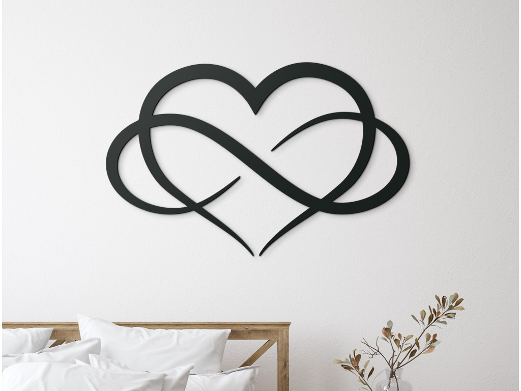 Spojením symbolu nekonečna a srdca nám vznikol krásny symbolický obraz, ktorý predstavuje nekonečnú lásku k našej polovičke. Či už týmto obrazom chcete potešiť svojho blížneho alebo ju kupujete pre seba, táto štýlová dekorácia krásne zapadne do každého interiéru.
