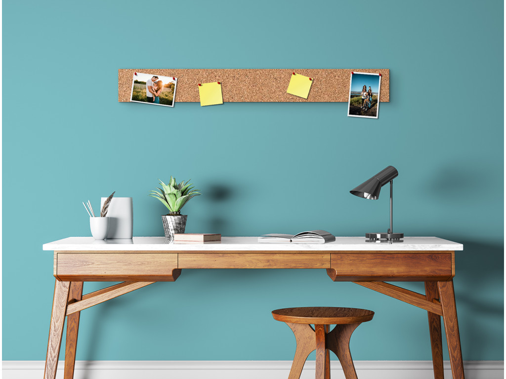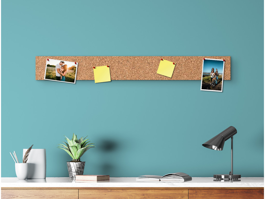 Cette fine bande en liège est une excellente solution pour ceux qui préfèrent un design minimaliste. Vous pouvez l’accrocher au mur à l’horizontale ou à la verticale afin de créer un espace idéal pour vos photos et vos citations préférées.