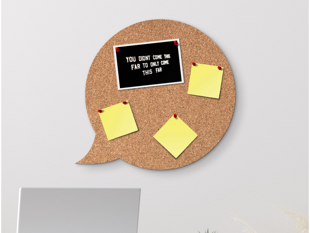 Premeňte svoju stenu na miesto plné kreativity s našou korkovou tabuľou v tvare textovej bubliny. Použite ju na pripnutie dôležitých správ, rozvrhov, fotografií alebo čohokoľvek, čo vás inšpiruje a motivuje každý deň.