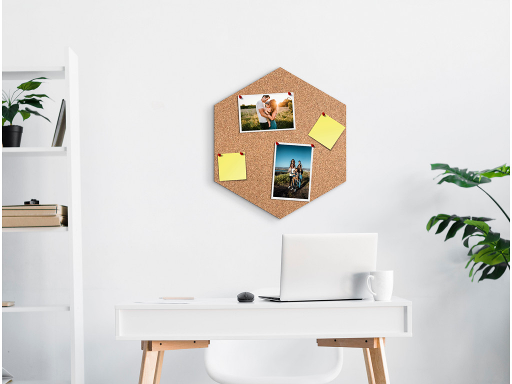 Nástenka na stenu v tvare hexagonu vám umožní zavesiť si na stenu fotografie, poznámky či motivačné citáty. Môžete ju použiť ako samostatný dizajnový prvok alebo ju kombinovať s viacerými hexagonmi.