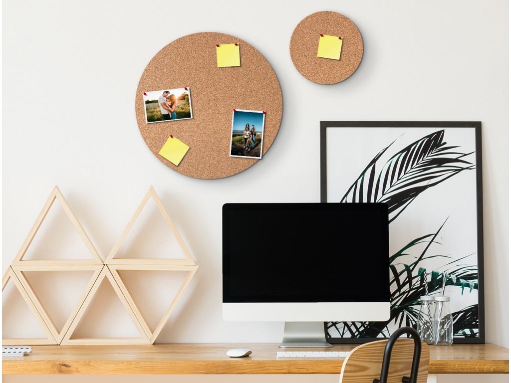 Korková nástenka na pripínanie obľúbených fotografií či citátov. Takisto, prírodný a útulný vzhľad korku sa ľahko kombinuje s rôznymi štýlmi interiéru, čím vytvára harmonický a príjemný priestor.
