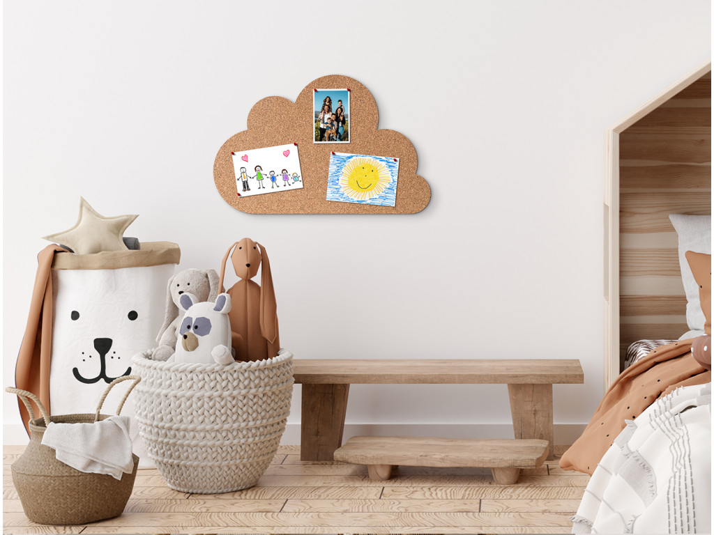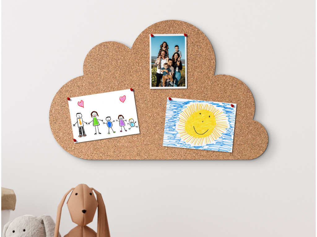 Zaveste svojmu dieťaťu do izby túto korkovú nástenku v tvare obláčika a využite ju na pripnite všetkého od školských projektov a rozvrhov až po milé odkazy a umelecké výtvory.