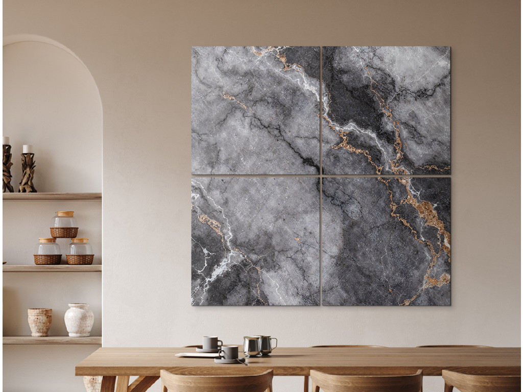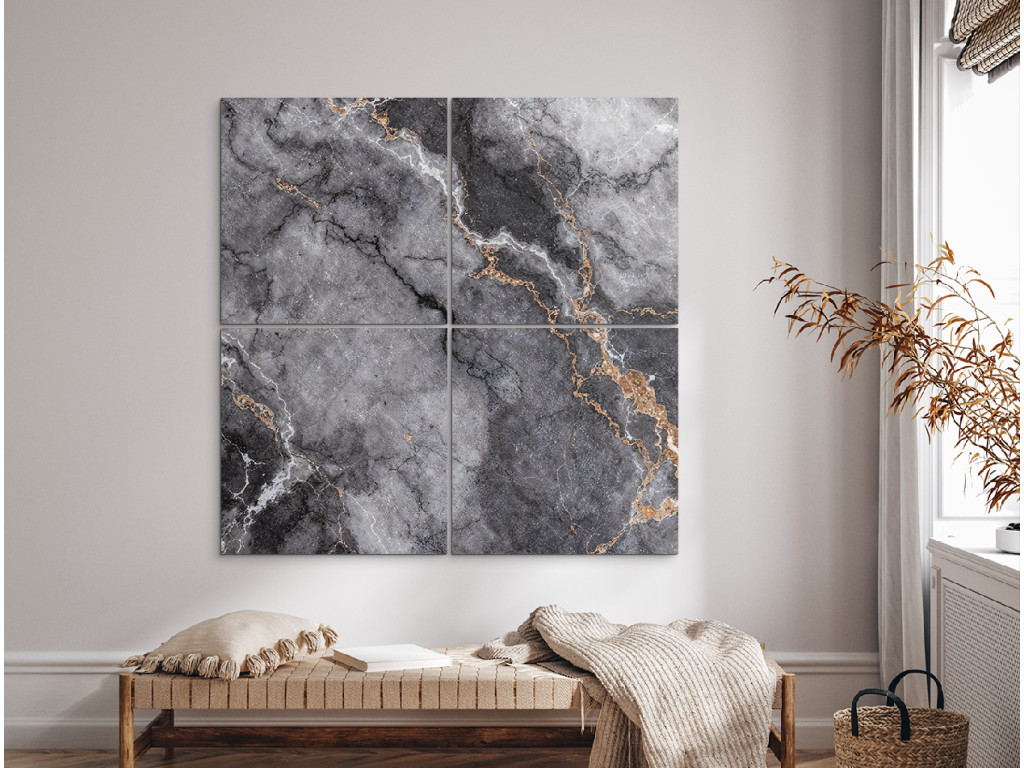 Le tableau Marbre accentué est un accessoire élégant qui combine l'aspect luxueux du marbre et les avantages de l'impression UV moderne. Par rapport au marbre véritable, il offre un prix plus bas, une installation plus simple et aucun entretien, tout en conservant le même aspect haut de gamme et élégant. Les tons noirs et gris avec des détails sableux créent un effet contrasté et moderne qui égayera n'importe quel intérieur. Offrez-vous une touche d'élégance et une beauté durable : une image qui résiste au temps et ne se démode jamais.