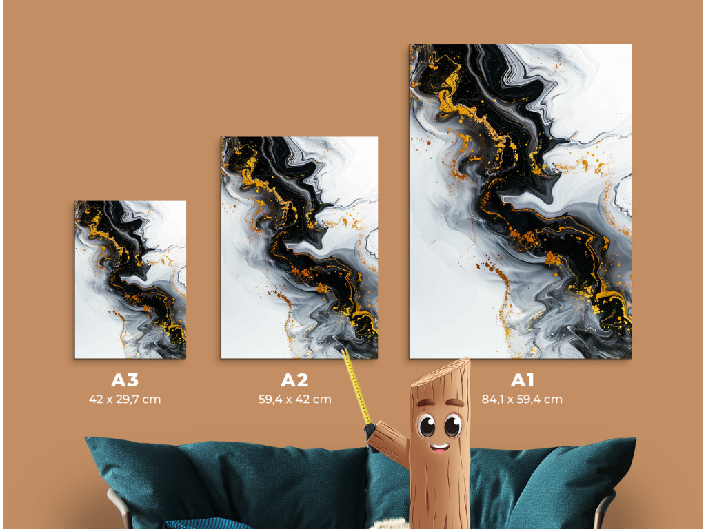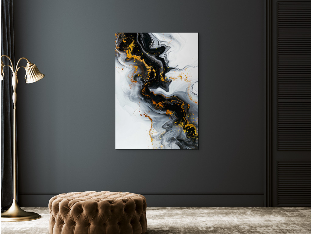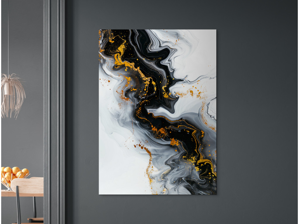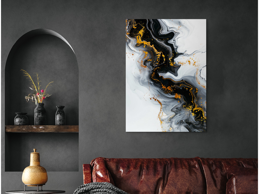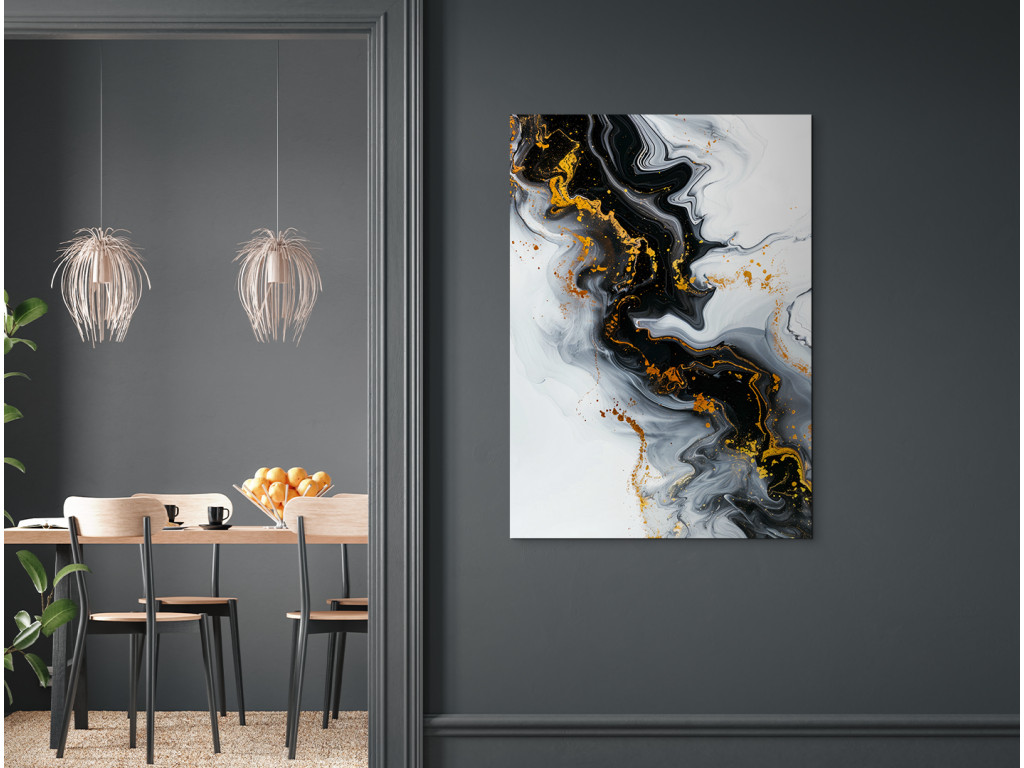 Le tableau en marbre Dispersion est un accessoire élégant qui combine l'aspect luxueux du marbre et les avantages de l'impression UV moderne. Par rapport au marbre véritable, il offre un prix plus bas, une installation plus simple et aucun entretien, tout en conservant le même aspect haut de gamme et élégant. Les tons noirs et blancs avec des détails dorés créent un effet contrasté et moderne qui égayera n'importe quel intérieur. Offrez-vous une touche d'élégance et une beauté durable : un tableau qui résiste au temps et ne se démode jamais.