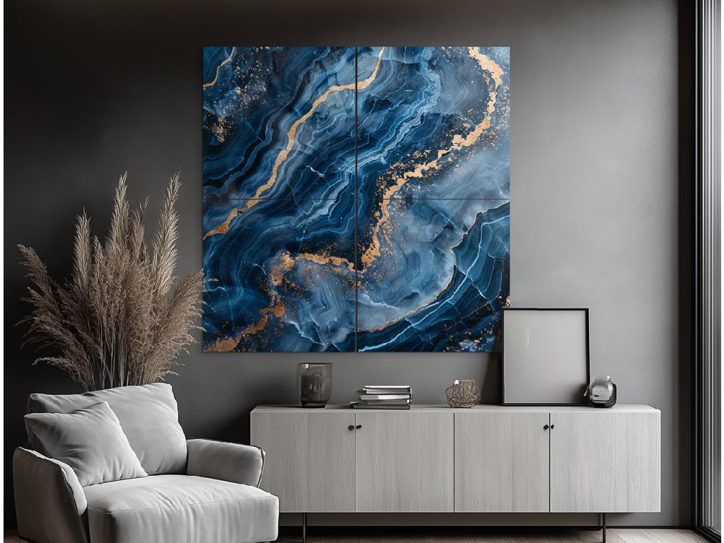 Le tableau en marbre Blue Shine est un accessoire élégant qui combine l'aspect luxueux du marbre et les avantages de l'impression UV moderne. Par rapport au marbre véritable, il offre un prix plus bas, une installation plus simple et aucun entretien, tout en conservant le même aspect haut de gamme et élégant. Les tons noirs et bleus avec des détails dorés créent un effet contrasté et moderne qui égayera n'importe quel intérieur. Offrez-vous une touche d'élégance et une beauté durable, un tableau qui résiste au temps et ne se démode jamais.