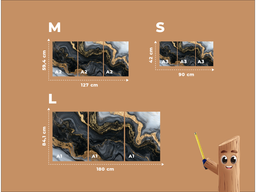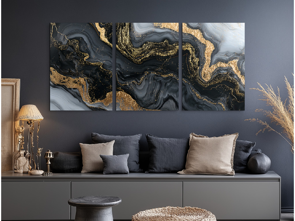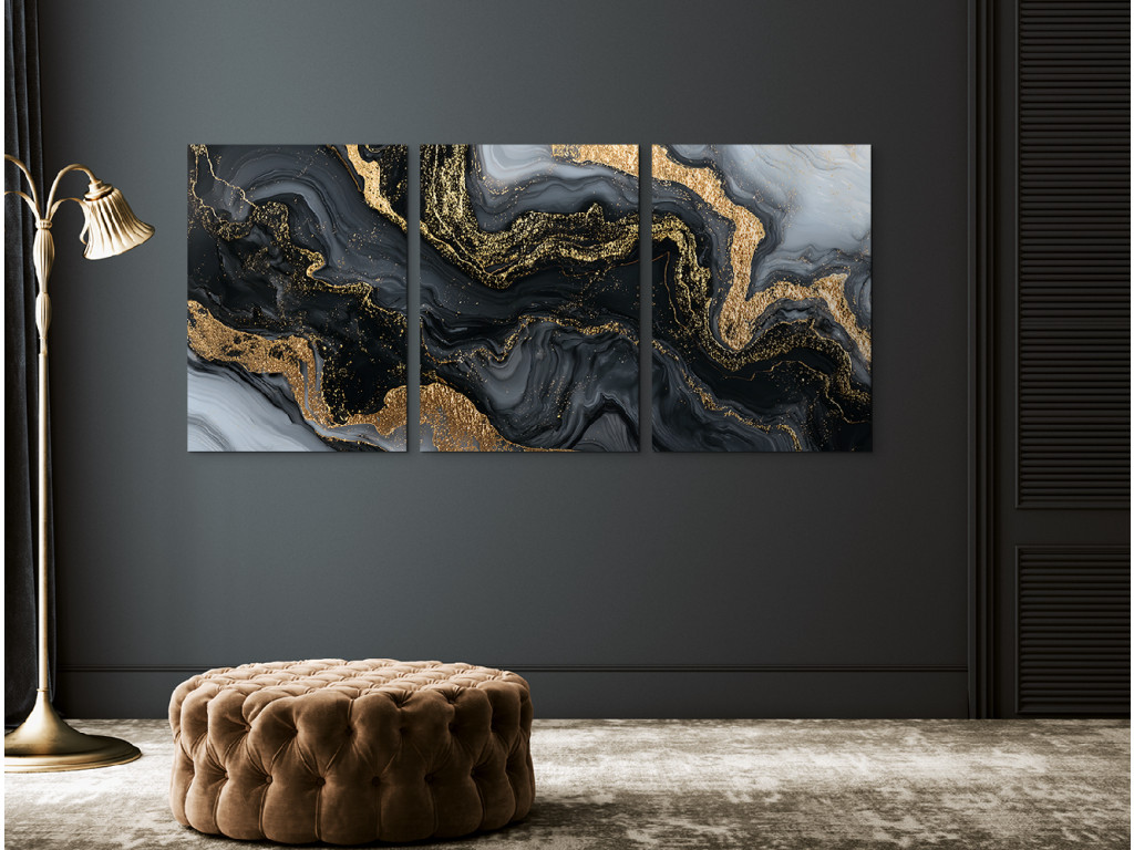 Le tableau en marbre en trois parties Noblesse combine des lignes abstraites et un effet marbré, créant ainsi une touche luxueuse unique sur votre mur. L'impression UV met en valeur les détails et les couleurs qui imitent fidèlement la surface du marbre. C'est un accessoire moderne et élégant qui apporte luminosité, dynamisme et style à votre intérieur. Le choix idéal pour les amateurs de minimalisme et de luxe.