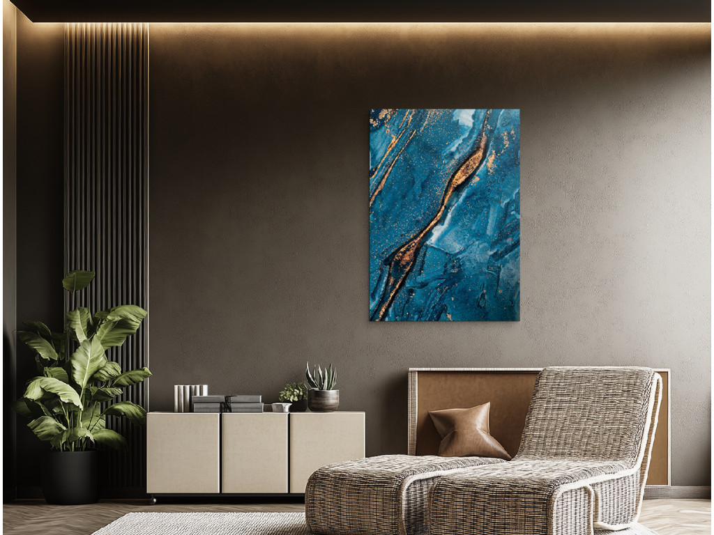 Le tableau en marbre Liquid Gold combine des lignes dorées abstraites et un effet marbré époxy turquoise, créant ainsi un accent luxueux unique sur le mur. L'impression UV met en valeur les détails et les couleurs qui imitent fidèlement la surface du marbre. C'est un accessoire moderne et élégant qui apporte luminosité, dynamisme et style à votre intérieur. Le choix idéal pour les amateurs de minimalisme et de luxe.
