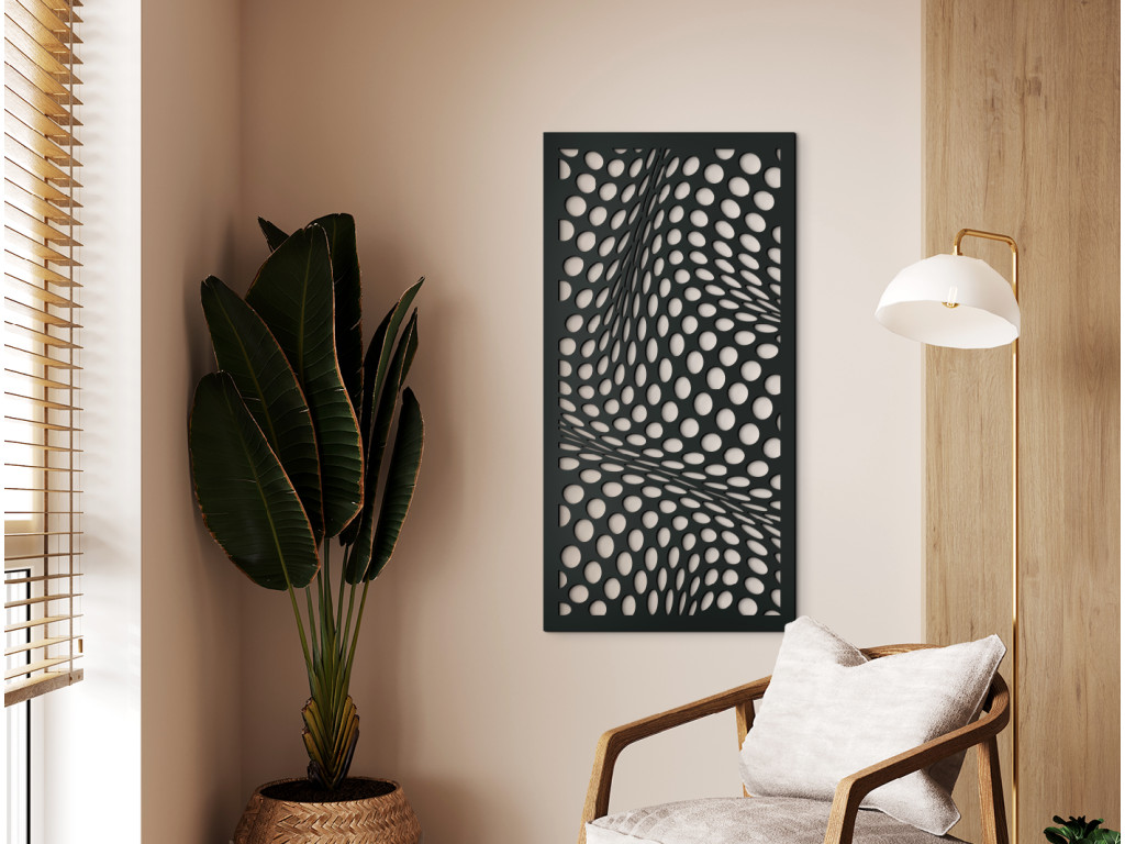 Máte radi abstraktné obrazy? Jeden z nich máme aj pre vás. Dizajnový obraz na stenu Sieťovina vnesie do vašej kancelárie, obývačky aj spálne elegantný dizajn. Moderná dekorácia na stenu zobrazuje vlny s otvormi, ktoré pripomínajú sieť. Prispôsobte si obraz podľa svojich požiadaviek výberom veľkosti a farebného vyhotovenia.