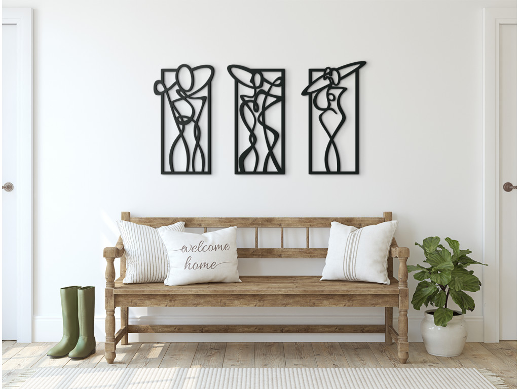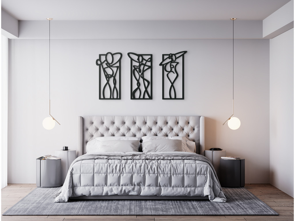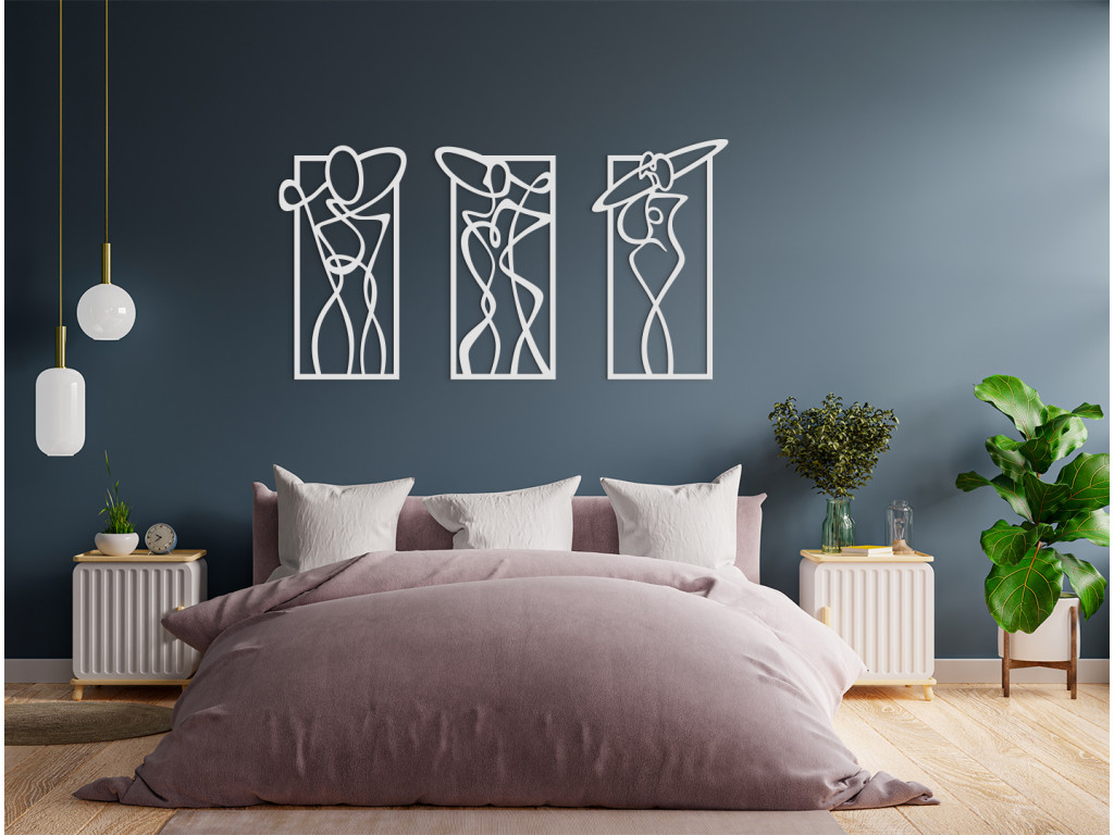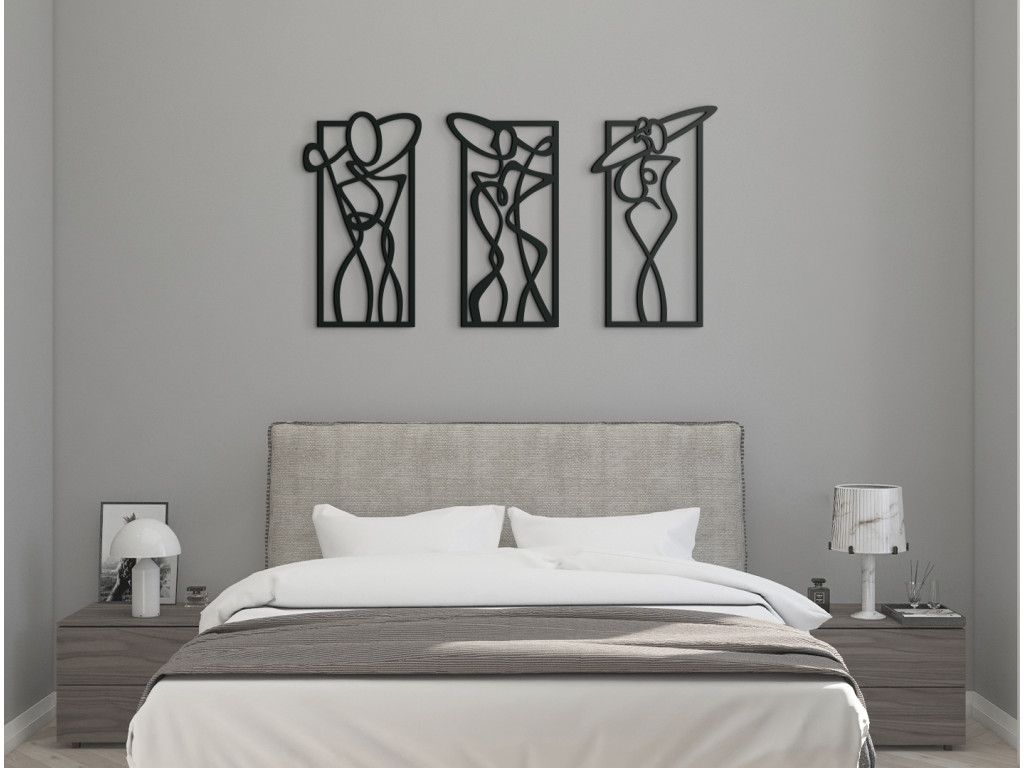 Dizajnový obraz s atraktívnym motívom zobrazujúci tri ženy v rozličných pózach je neštandardným a originálnym spôsobom nazerania na ženské telo. Umelecké pózy, ktoré postavy zaujímajú, spolu s jemným dôrazom na ich krivky, vytvárajú nezvyčajnú kombináciu moderného vkusu a elegancie.