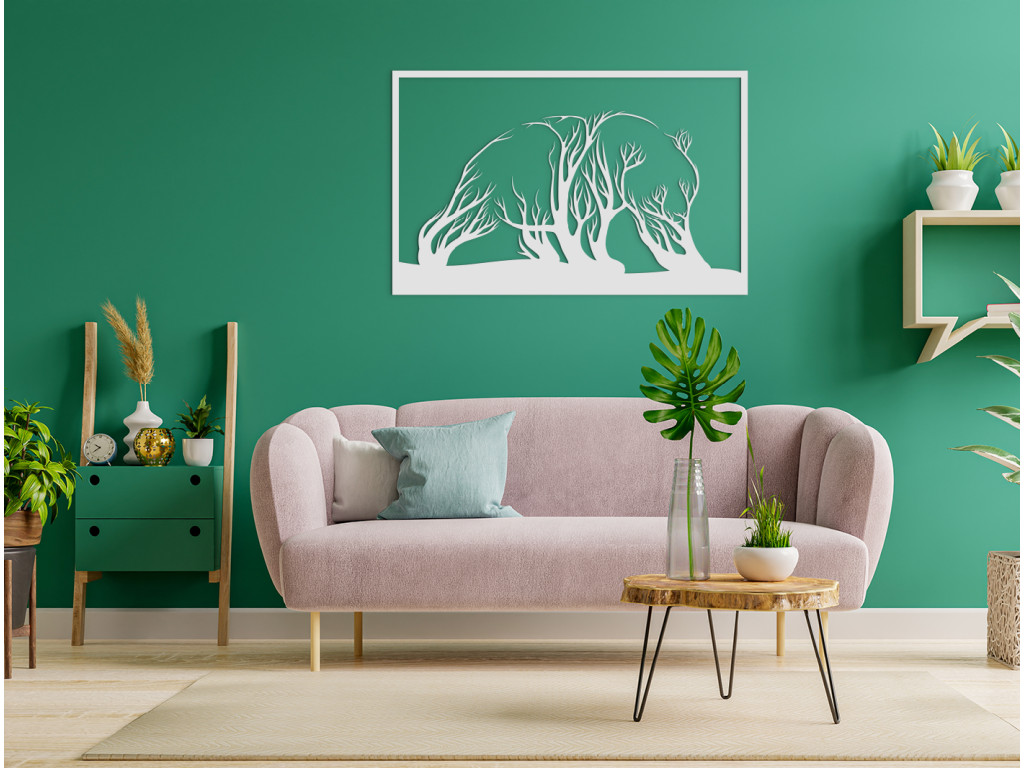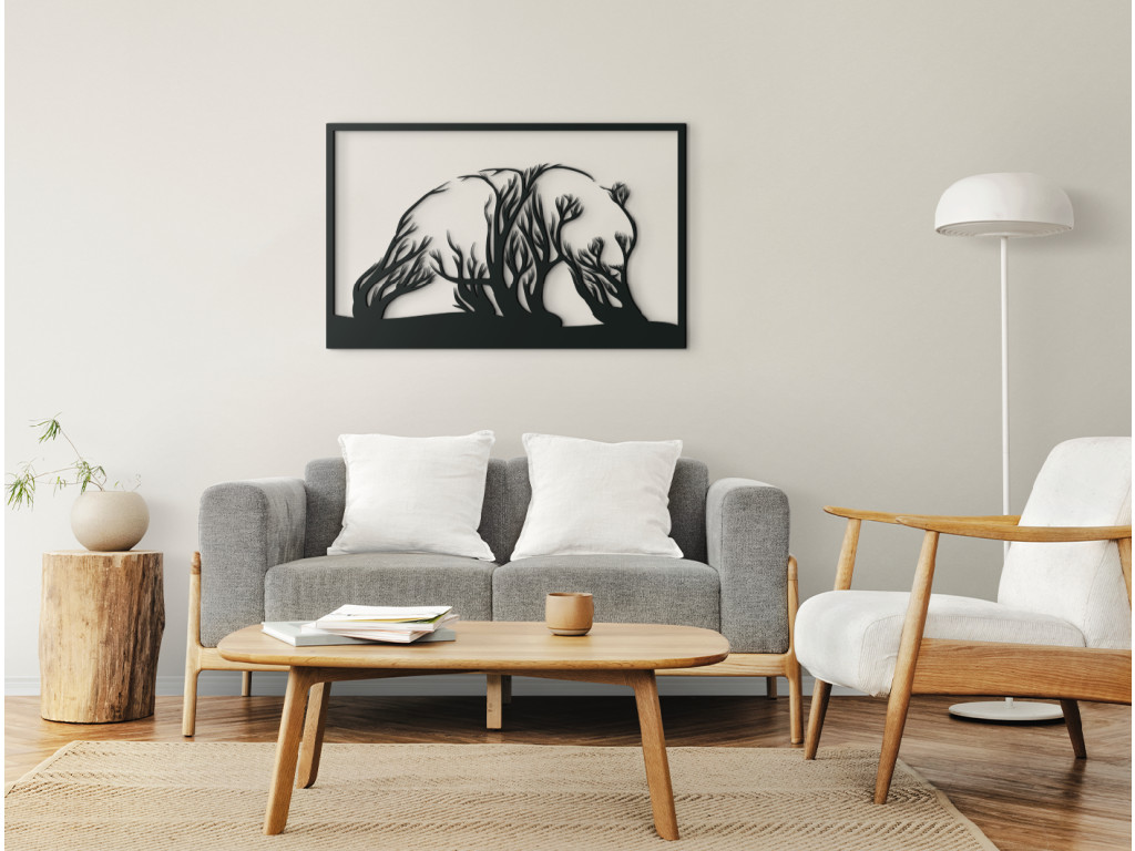 Hľadáte nejaký netradičný doplnok do interiéru, ktorý by vám skrášlil prázdne steny? V tom prípade sa vám určite zapáči drevená nálepka na stenu s motívom stromov, ktorých koruny sa navzájom spájajú do podoby medveďa. Originálny a nápaditý dizajn sa hodí predovšetkým do moderných interiérov.